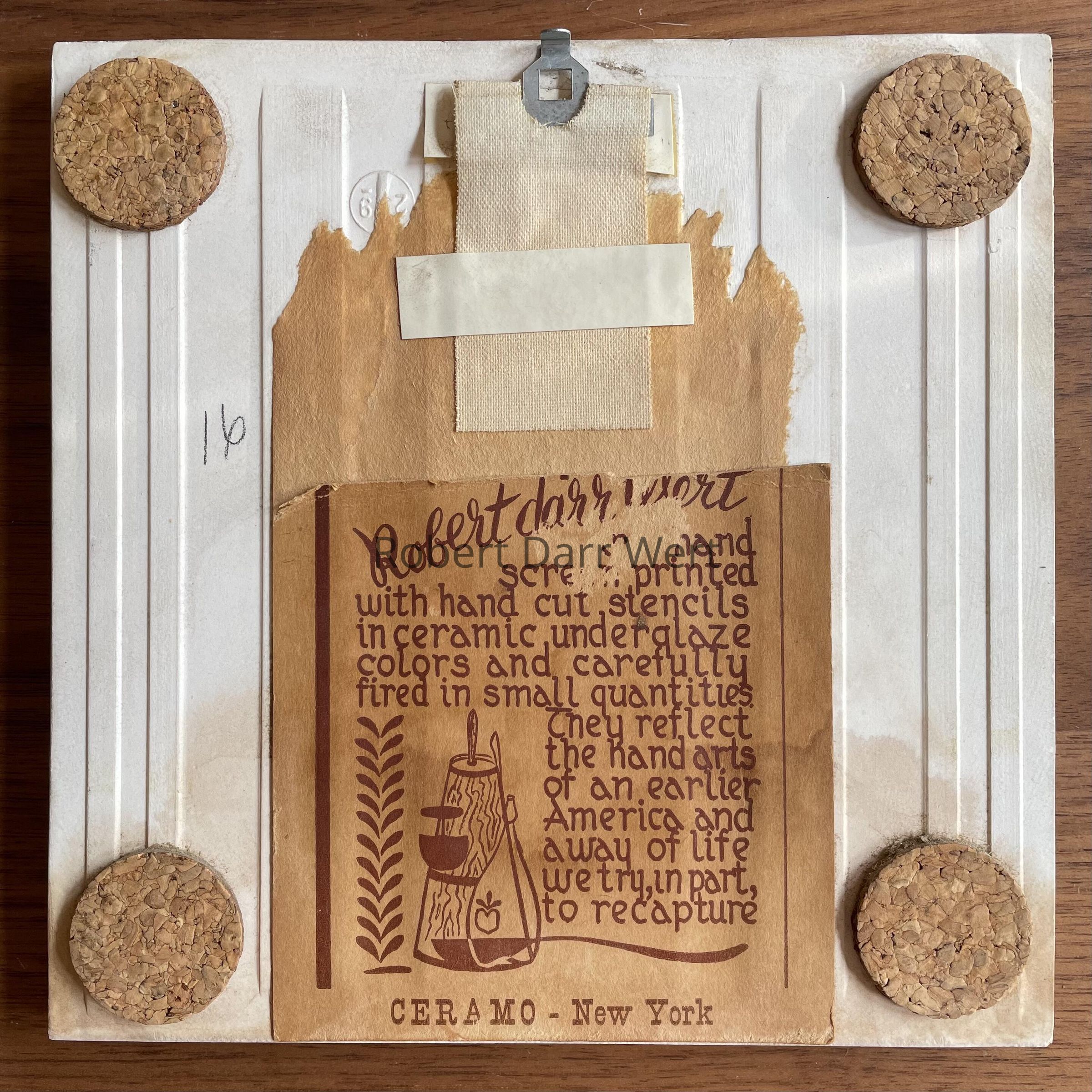 This tile appears in the c.1953 brochure “Robert Darr Wert/Country Print Tiles”, and the c.1960 brochure “Robert Darr Wert/Country Prints Tiles”; see images.Made/Created
