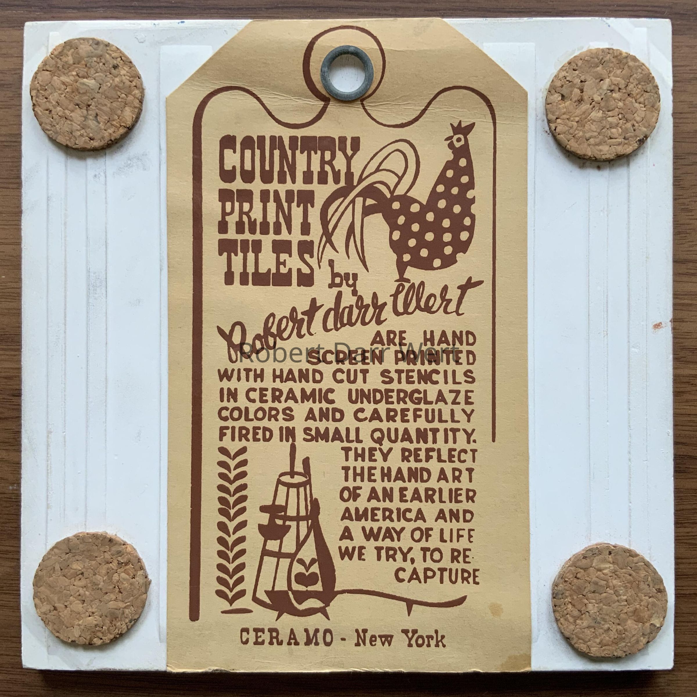 This design is printed on the thicker tile body used by Country Prints/Ceramo Studio prior to 1962.
