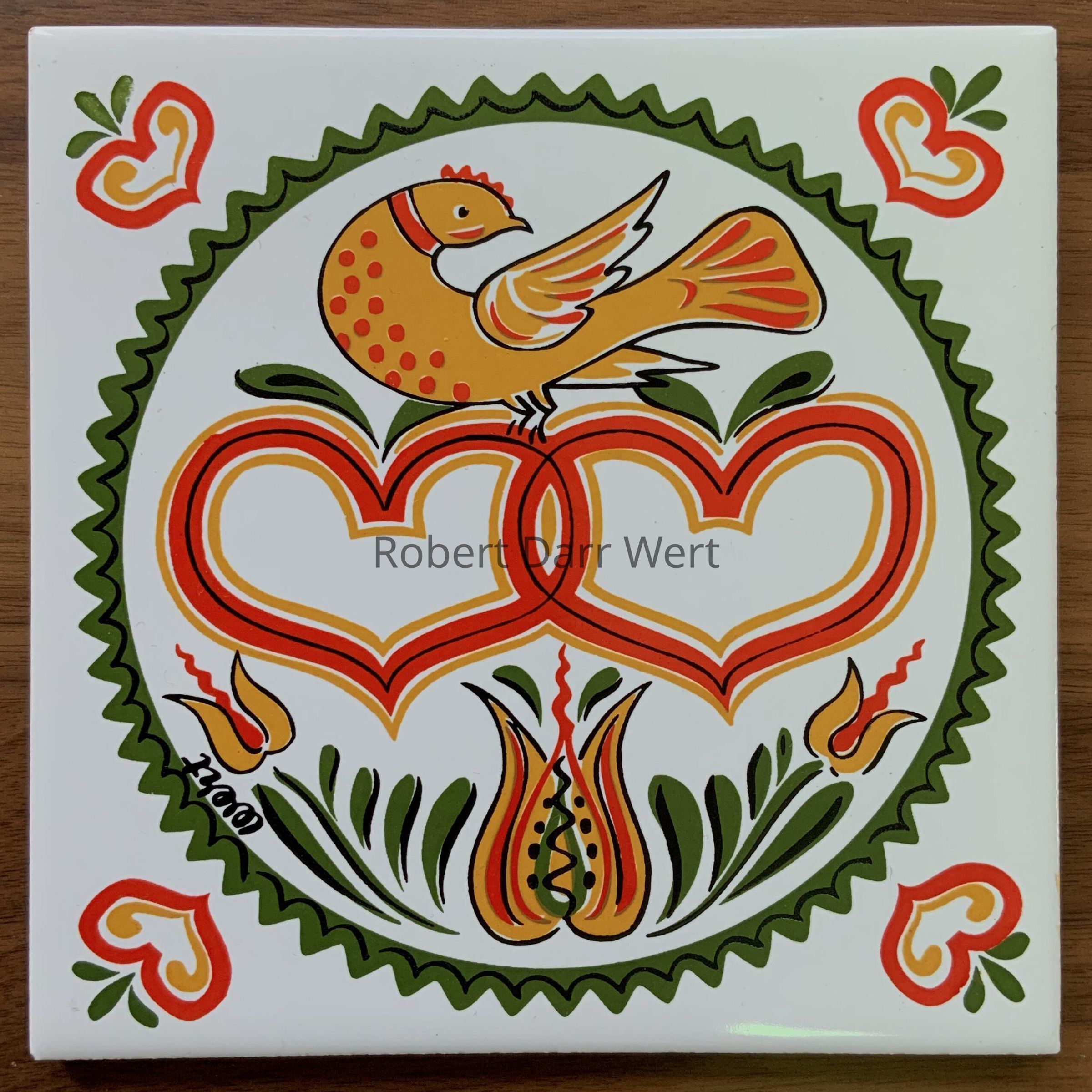This example is printed on the thinner tile body used by Country Prints/Ceramo Studio from 1962 onward.