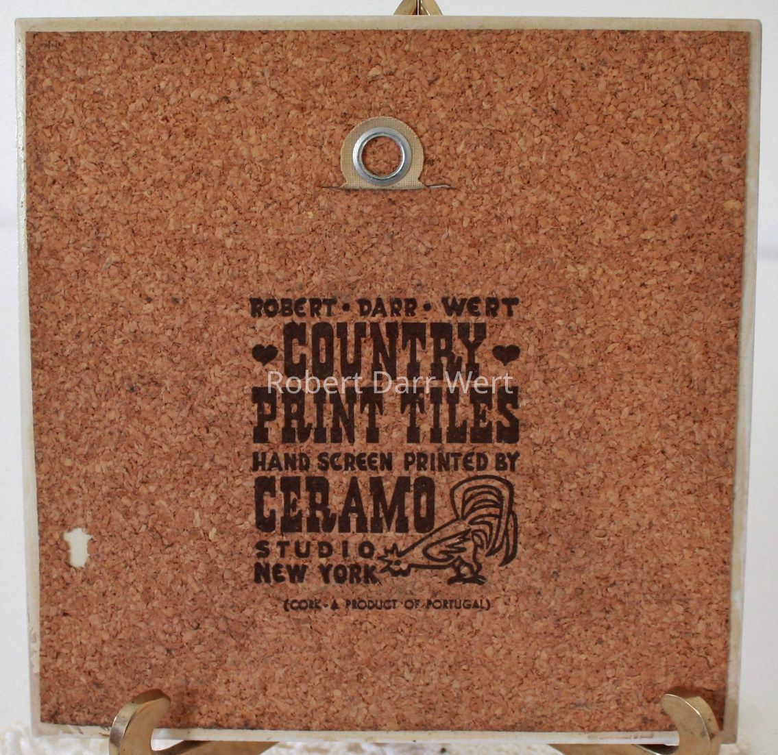 This design is printed on the thinner tile body used by Country Prints/Ceramo Studio from 1962 onward.