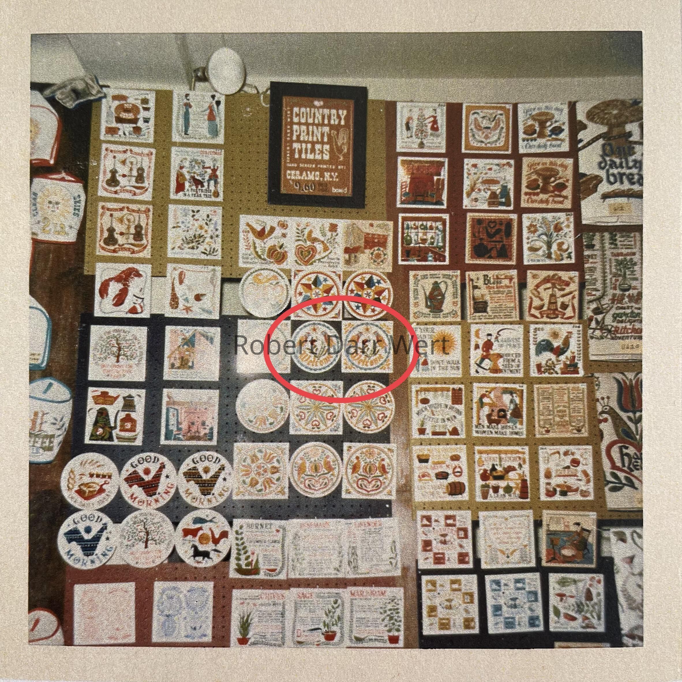 Design, screen production, and mixing of colored overglazes performed at the Country Prints workshop, Gill, MA. Screen printing of overglaze colors, firing and finishing by Ceramo Studio, NYC.