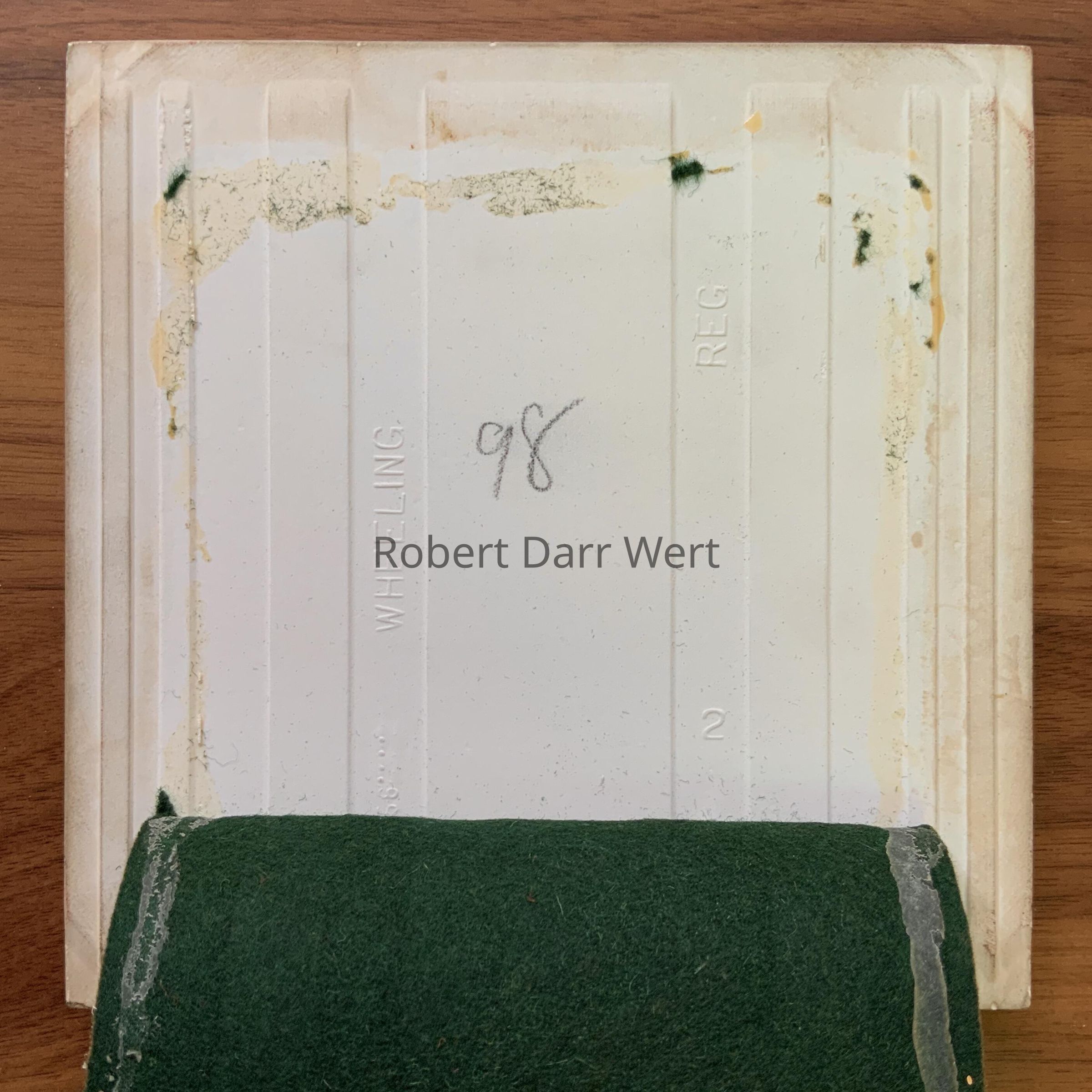 On tile back, to the left of the tile manufacturer’s name, Wheeling, is the number 56, which indicates the year the tile blank was made.