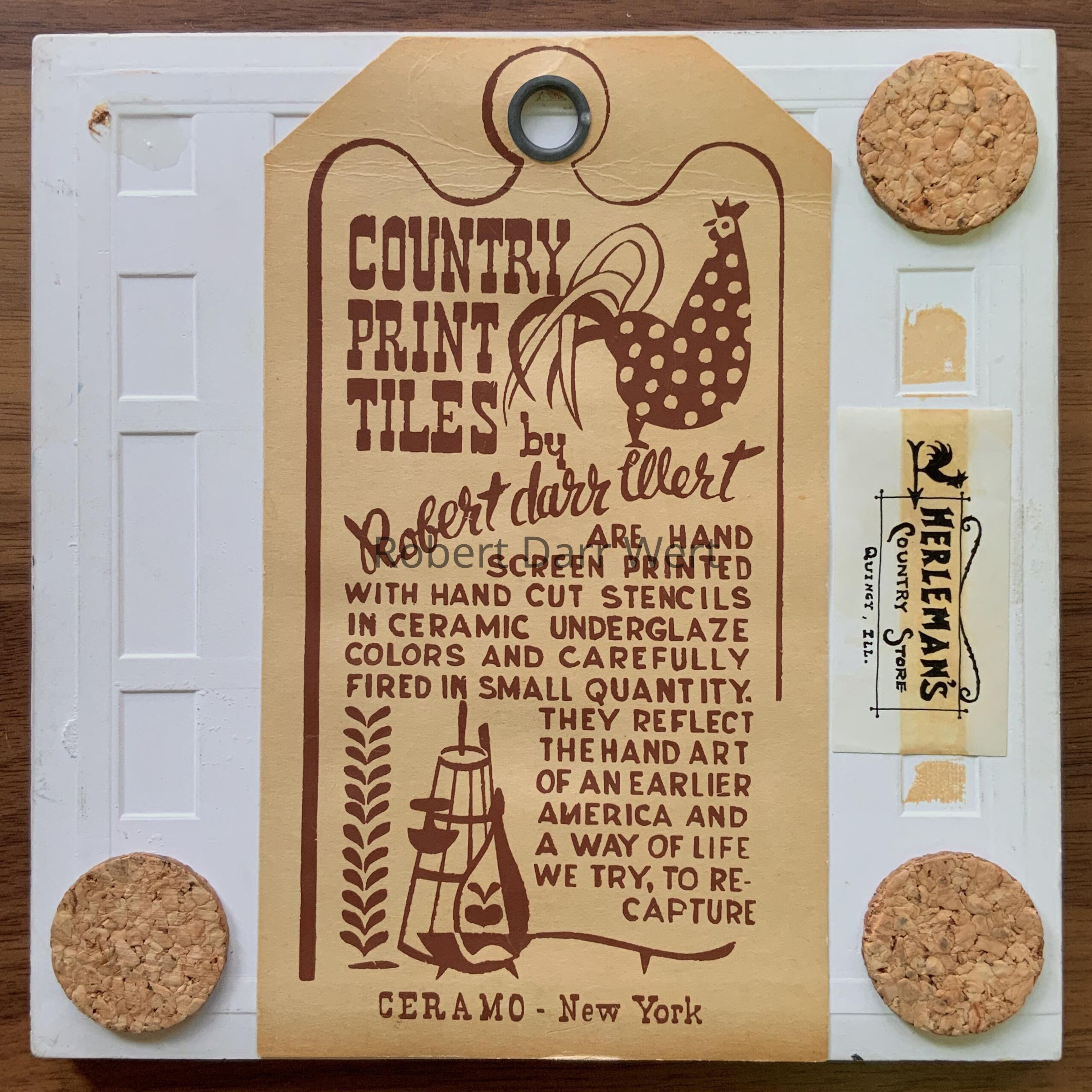 This example is printed on the thicker tile body used by Country Prints/Ceramo Studio prior to 1962.