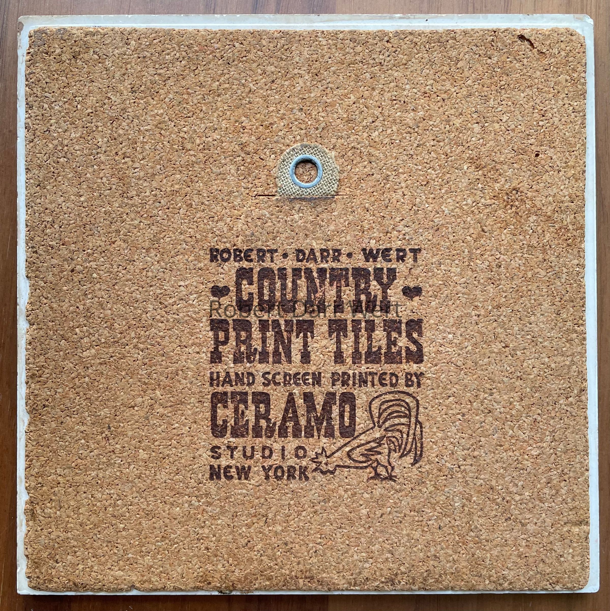 This example is printed on the thinner tile body used by Country Prints/Ceramo Studio from 1962 onward.Inscription/Signature/Marks