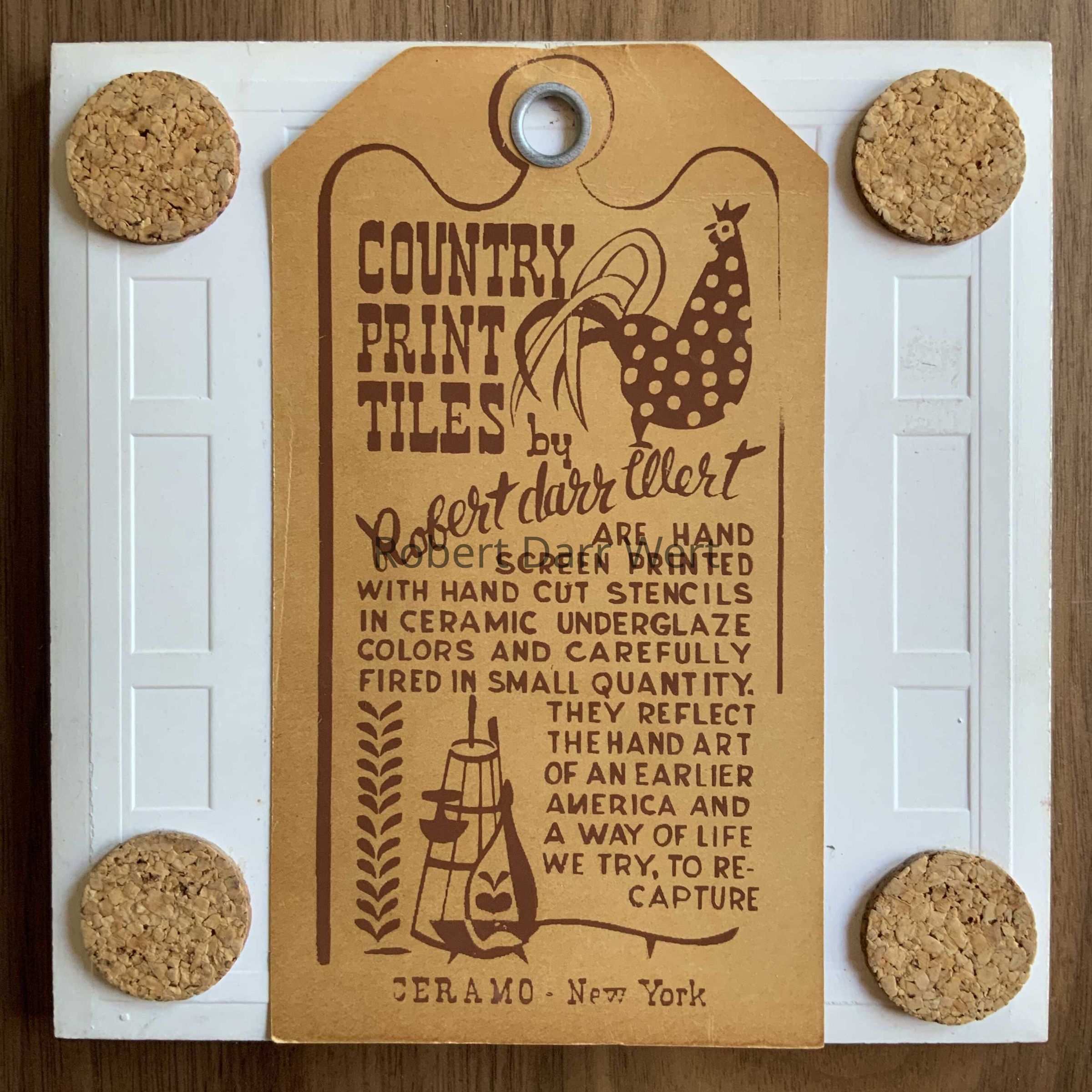 This tile appears in the brochure “Robert Darr Wert/Country Prints Tiles”, c.1960; see images.