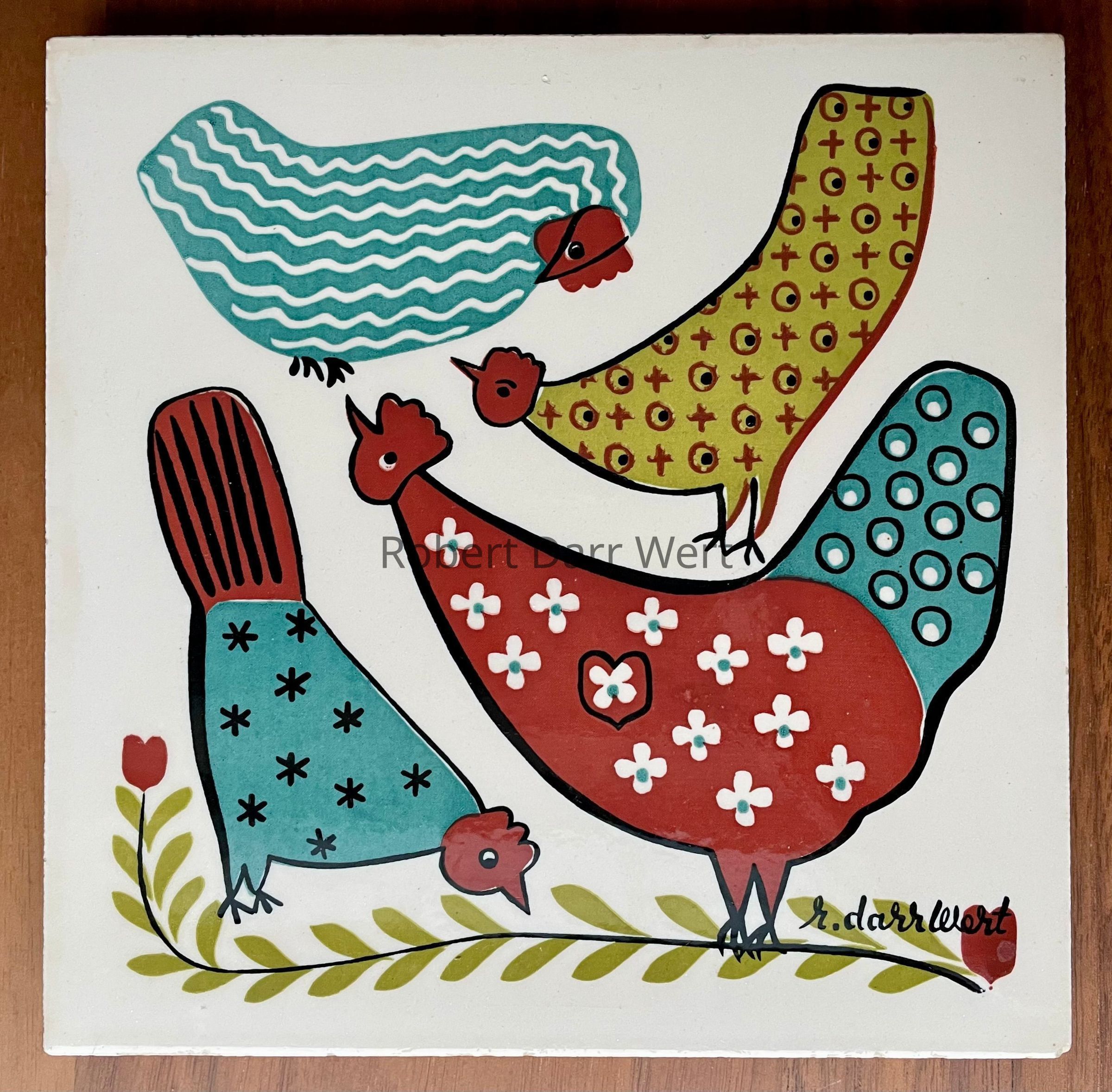 This example is printed on the thicker tile body used by Country Prints/Ceramo Studio prior to 1962.