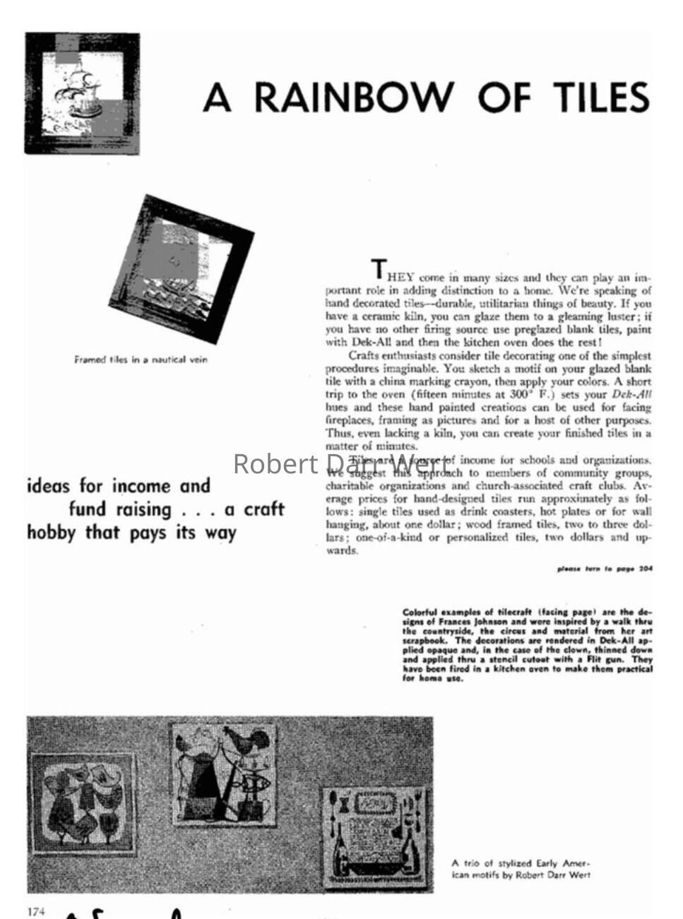 Date based on appearance in the journal Design, 1957, and inclusion in the c.1955 brochure “Robert Darr Wert/Country Print Tiles”; see images.
