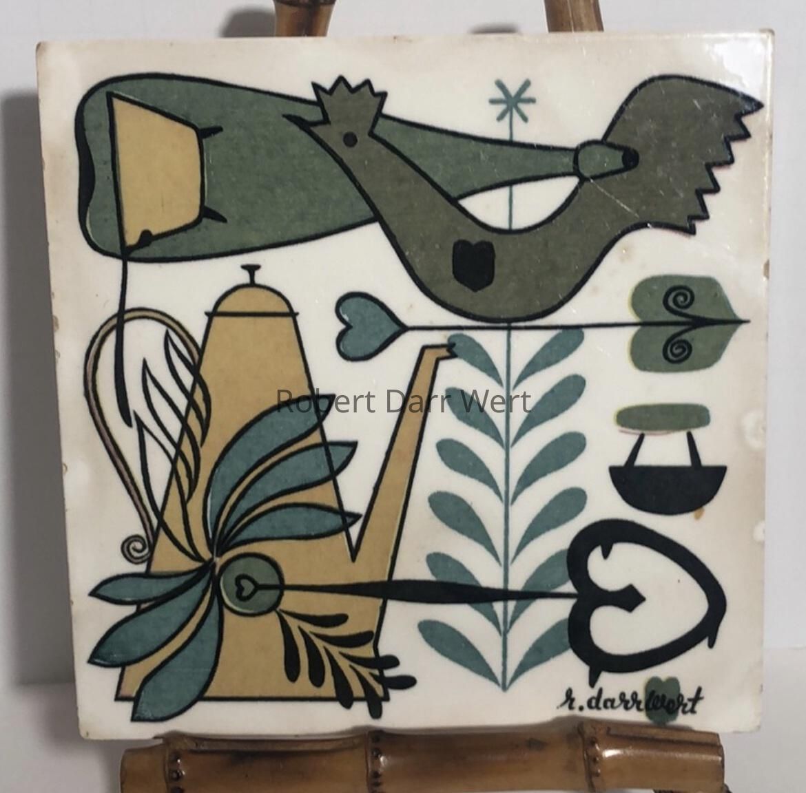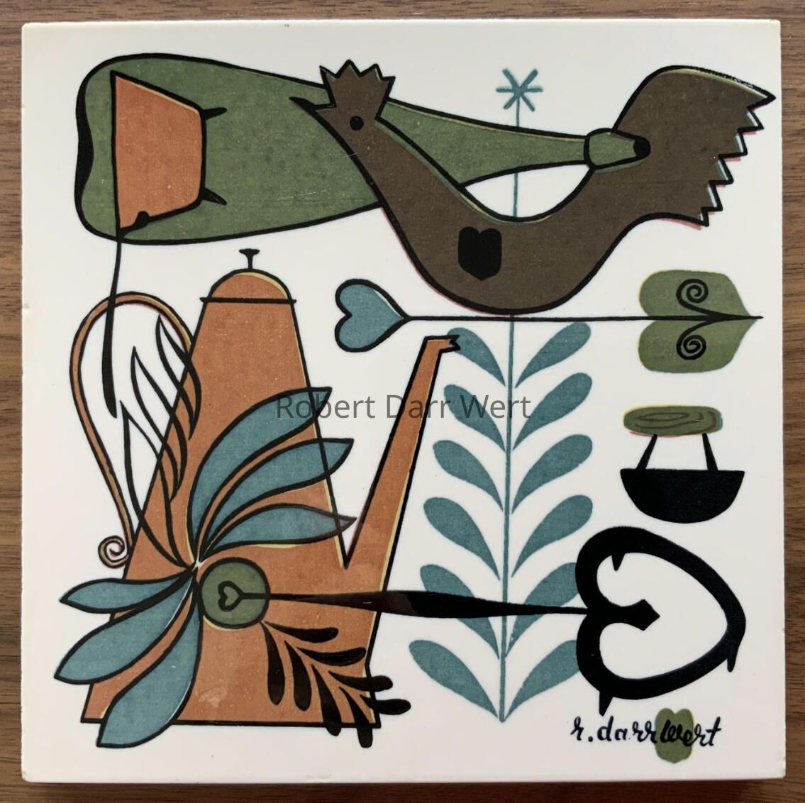 This example is printed on the thicker tile body used by Country Prints/Ceramo Studio prior to 1962.