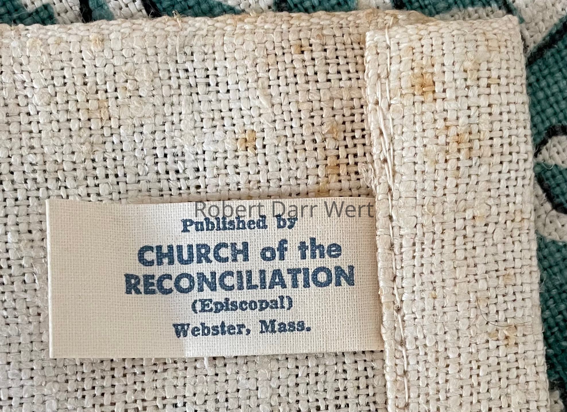 A tag sewn into the back of the upper right corner states, “Published by Church of the Renunciation, (Episcopal), Webster, Mass.