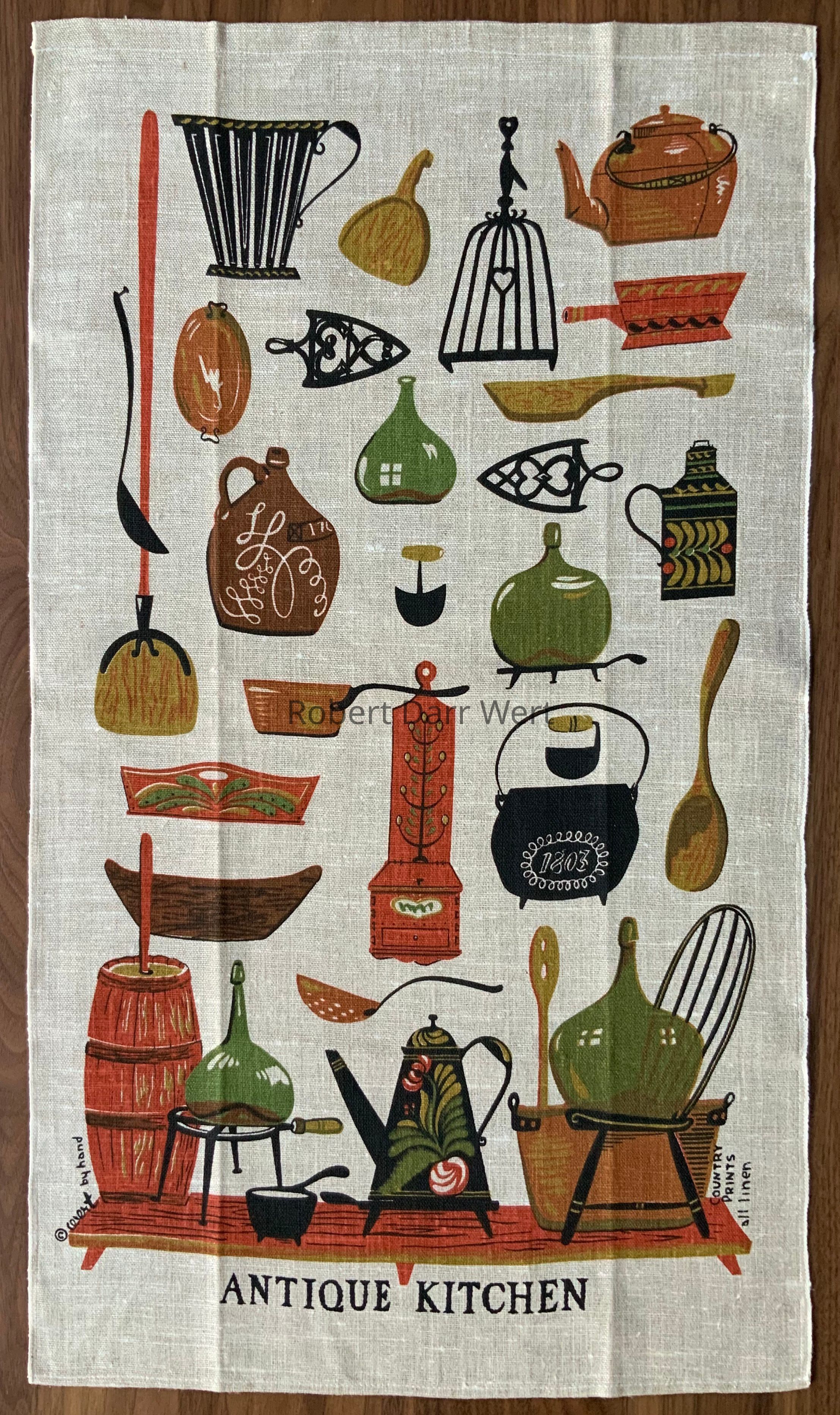 This towel/wallhanging appears in the brochures “Country Prints by Robert Darr Wert and Neighbors”, c.1963 and c.1966; see images.