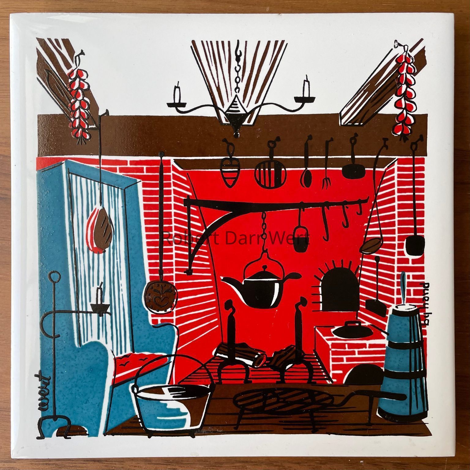 Matching tiles in two colorways were also produced. These items were available singly or in matched gift sets. A matching calendar towel was also available; see images.