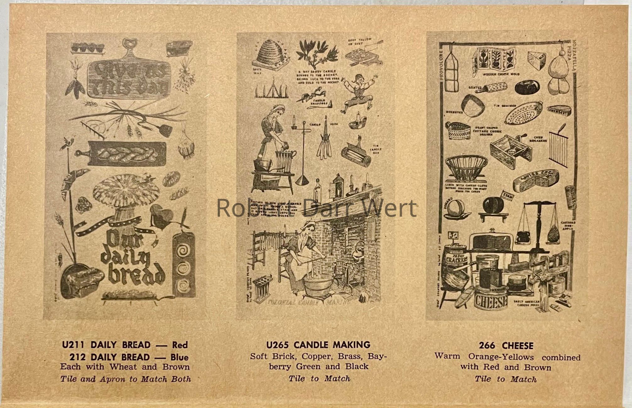 In a memo from Fritz Kaufhold (Country Prints business manager) to Bob MacKay (Stonelea Mills/Stevens Linen Associates) dated February 12, 1969, Fritz notes this design is an average seller, but the red colorway, Daily Bread U211, sells three times as many.