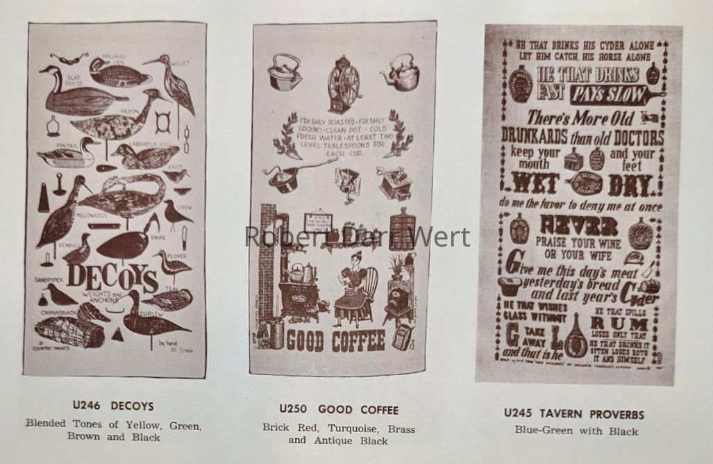 This is one of over sixty designs sold by Country Prints to Stevens Linen Associates of Dudley, Massachusetts, in January 1969. From that point onward, the designs were produced by Stevens with all reference to Robert Darr Wert and Country Prints removed. Many of these designs continued to be produced by Stevens throughout the 1970’s and some into the 1980’s.