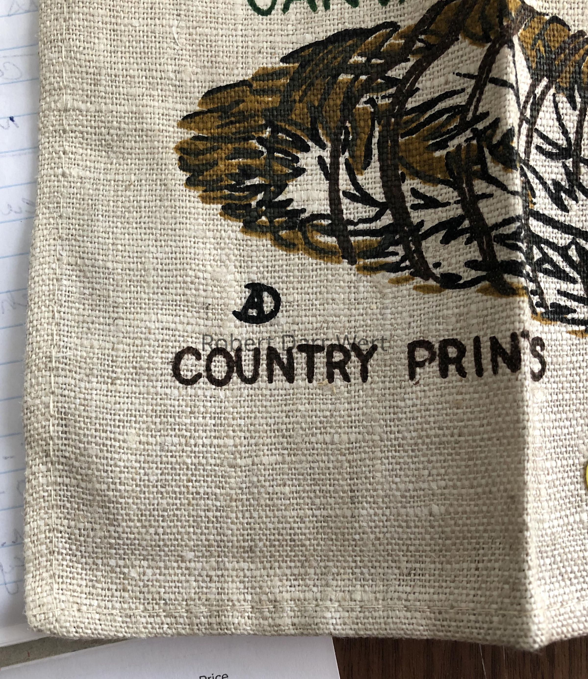 “AD” or “DA” and “COUNTRY PRINTS”, lower left corner; “by hand All LINEN”, lower right corner.Dimensions