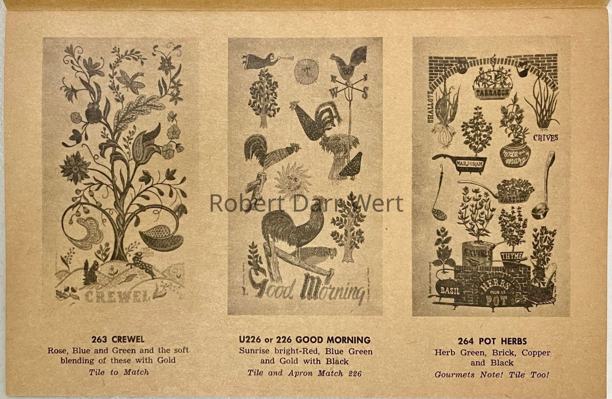 This towel/wallhanging appears in the brochures “Country Prints by Robert Darr Wert and Neighbors”, c.1963 and c.1966; see images.