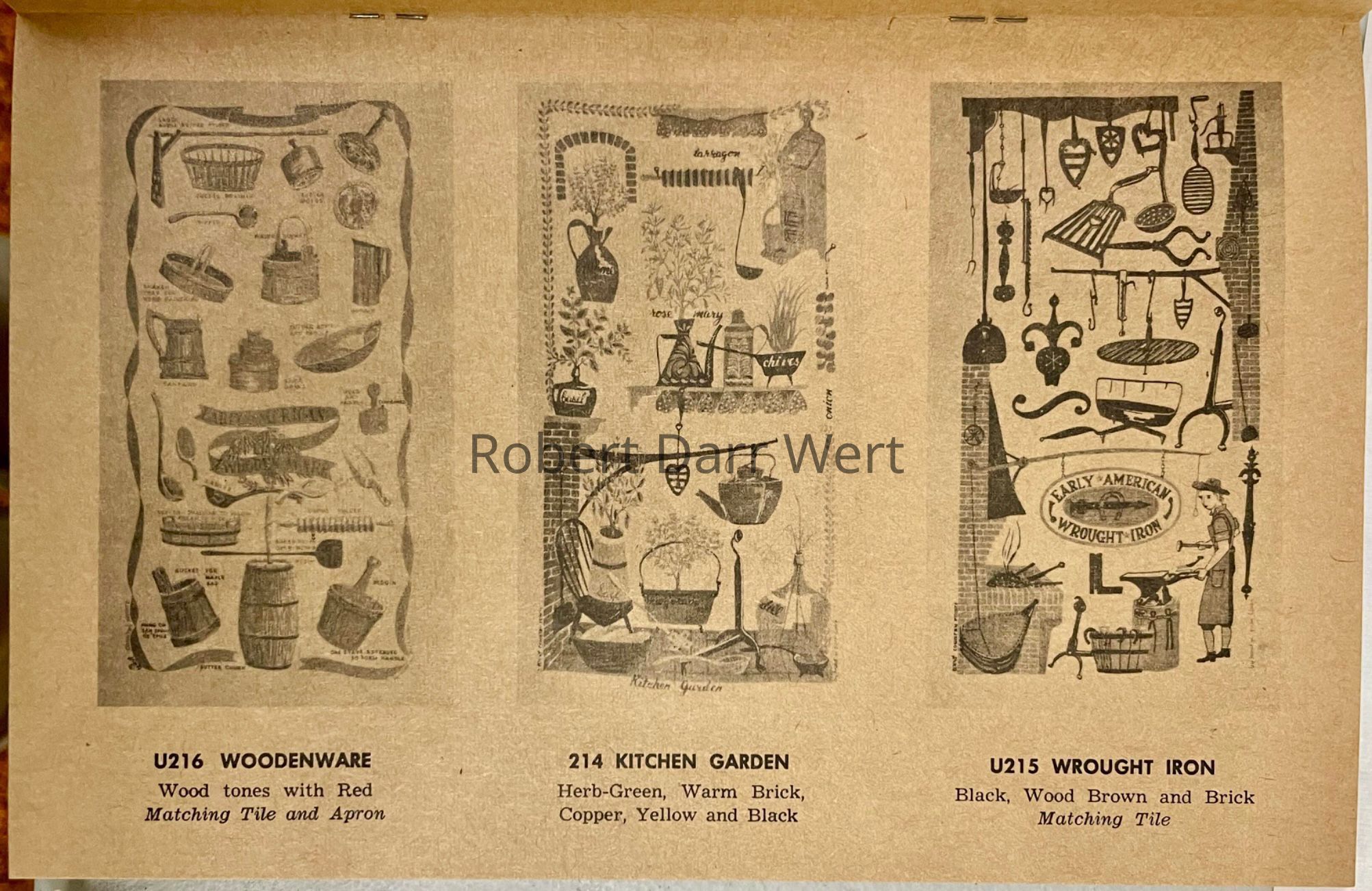 Herbs and cooking tools are recurrent themes in Wert’s work, appearing on linens, Gift Greetings, tiles, and framed prints.
