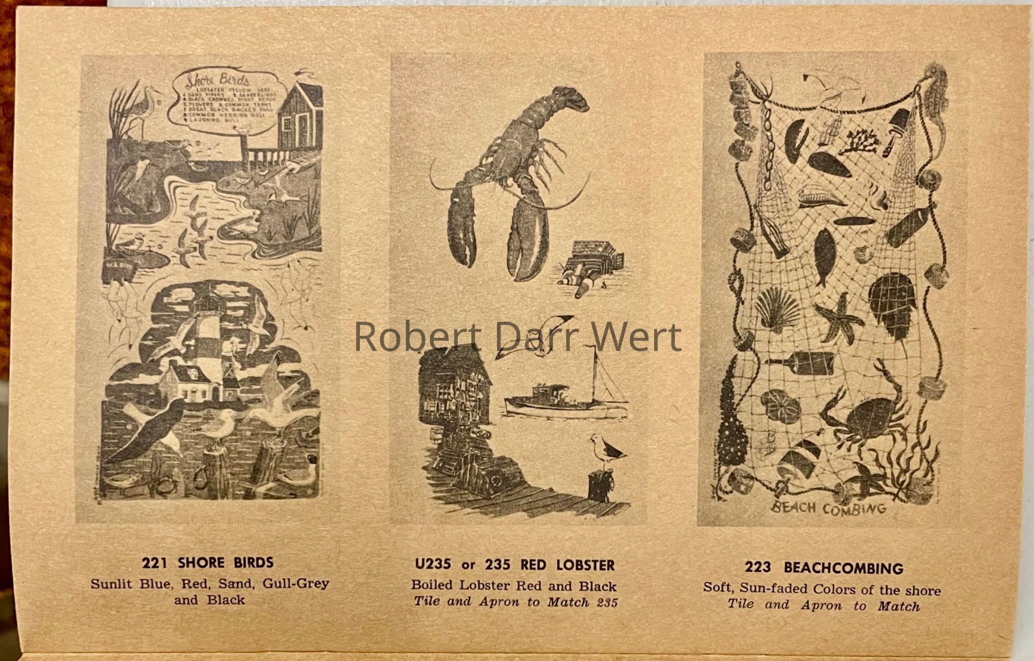 This is one of over sixty designs sold by Country Prints to Stevens Linen Associates of Dudley, Massachusetts, in January 1969. From that point onward, the designs were produced by Stevens with all reference to Robert Darr Wert and Country Prints removed. Many of these designs continued to be produced by Stevens throughout the 1970’s and some into the 1980’s.