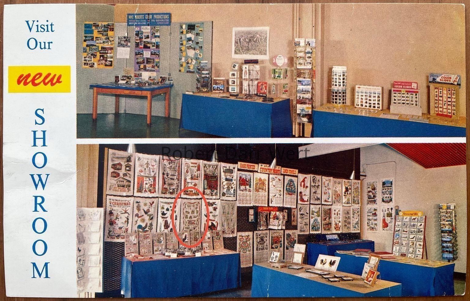 This towel/wallhanging appears on a c.1965 promotional postcard for Bromley & Co. of Boston, Massachusetts, Country Prints’ New England wholesale representative to the gift trade.Made/Created