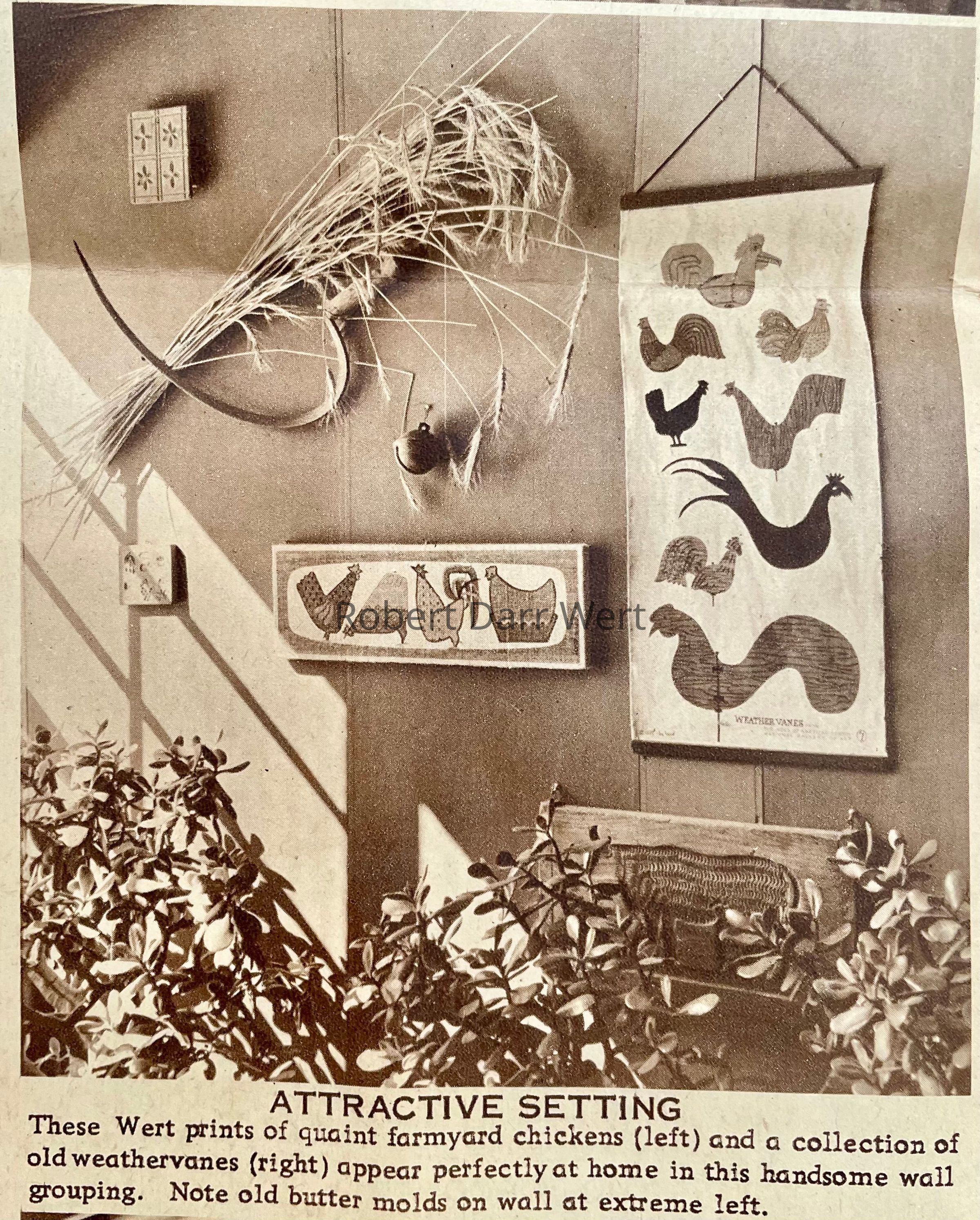 This Wall Board is listed in the Spring 1958 Country Prints price list, and appears in a Country Prints article in the Springfield Sunday Republican, March 29, 1959.Made/Created