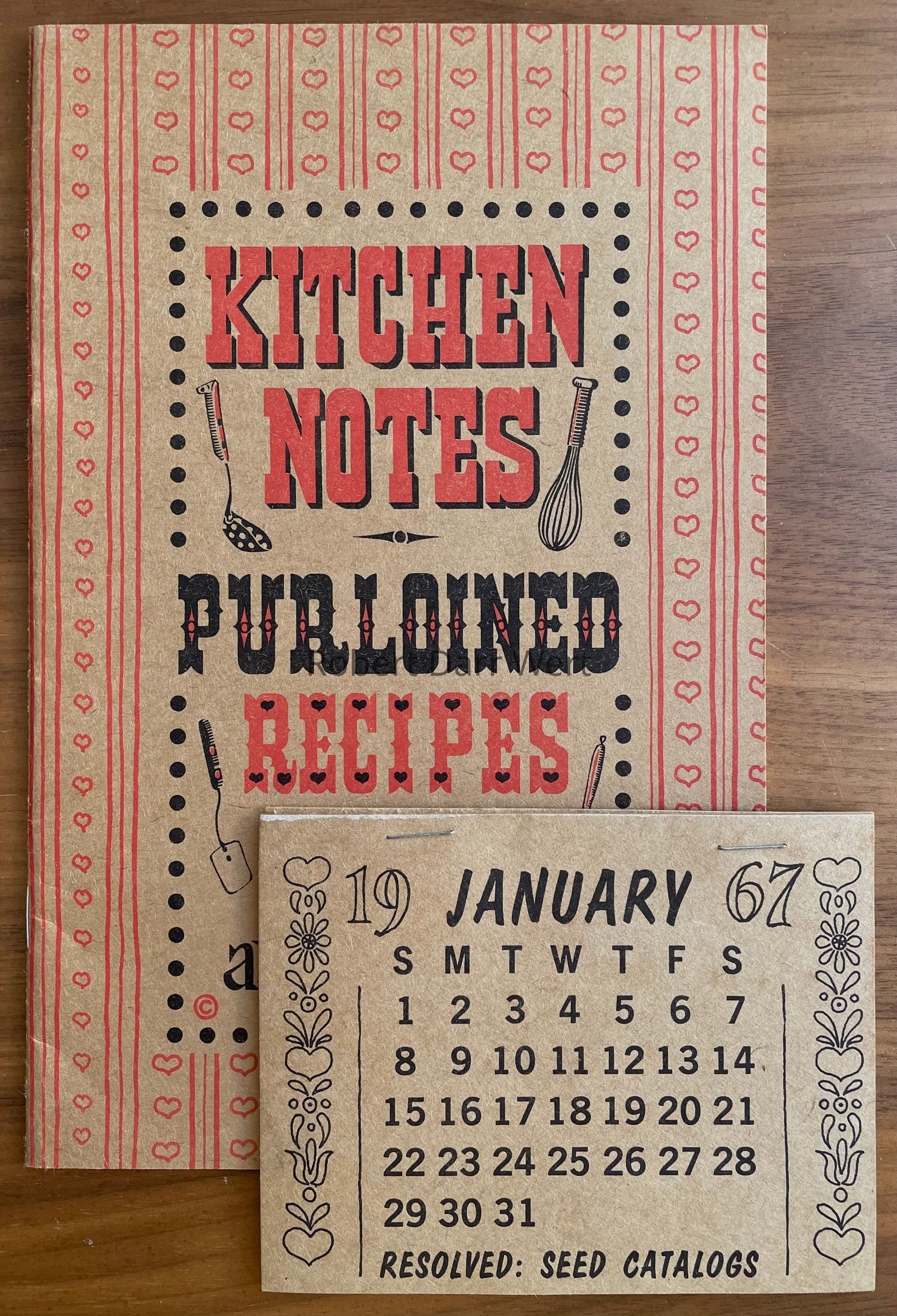 A sewn pocket at the base of the wallhanging held a paper cookbook and had a paper calendar stapled to the face; see images.