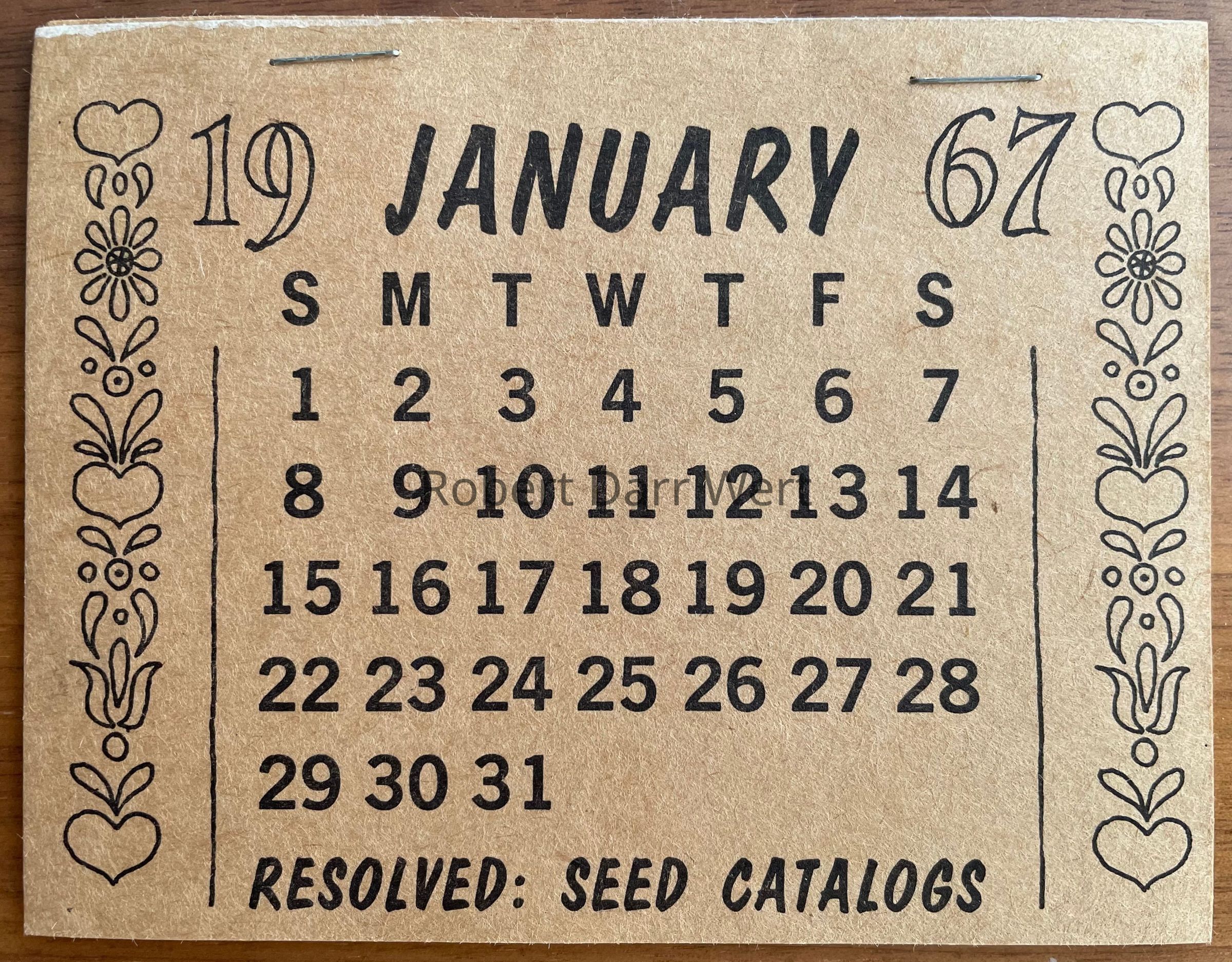 Launched in 1964 for the 1965 calendar year, Plowshares is Country Prints’ line of narrow wallhangings, typically 8” x 24”, the majority of which are Christian in theme. Each came with a hand printed envelope for mailing or gift giving. Many came with a paper calendar attached at the base of the hanging.