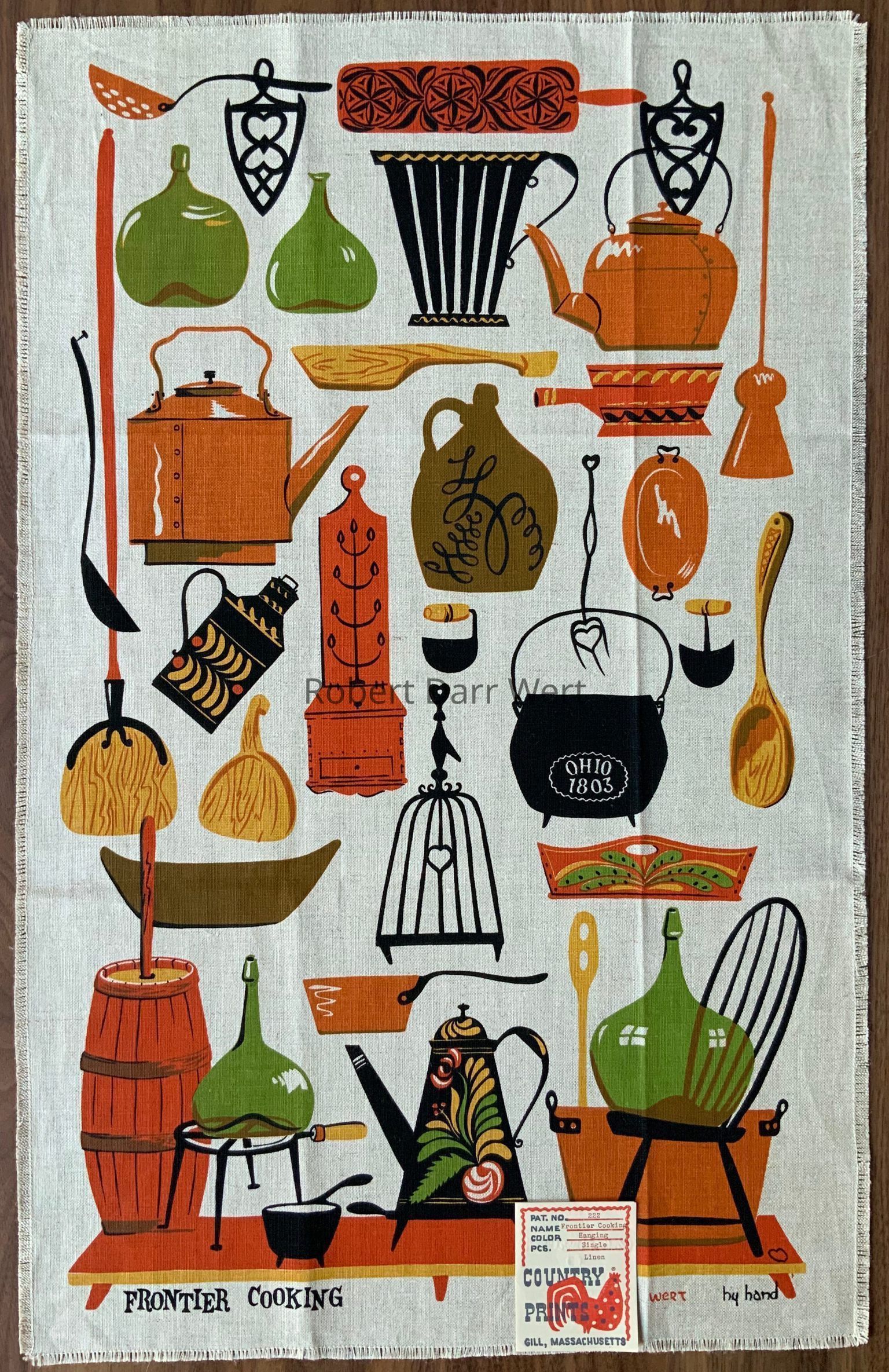 “Frontier Cooking”, bottom margin, and “hand print by wert OHIO 1915”, lower right corner.Material