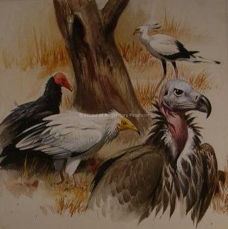 Three Vultures and Secretary Bird