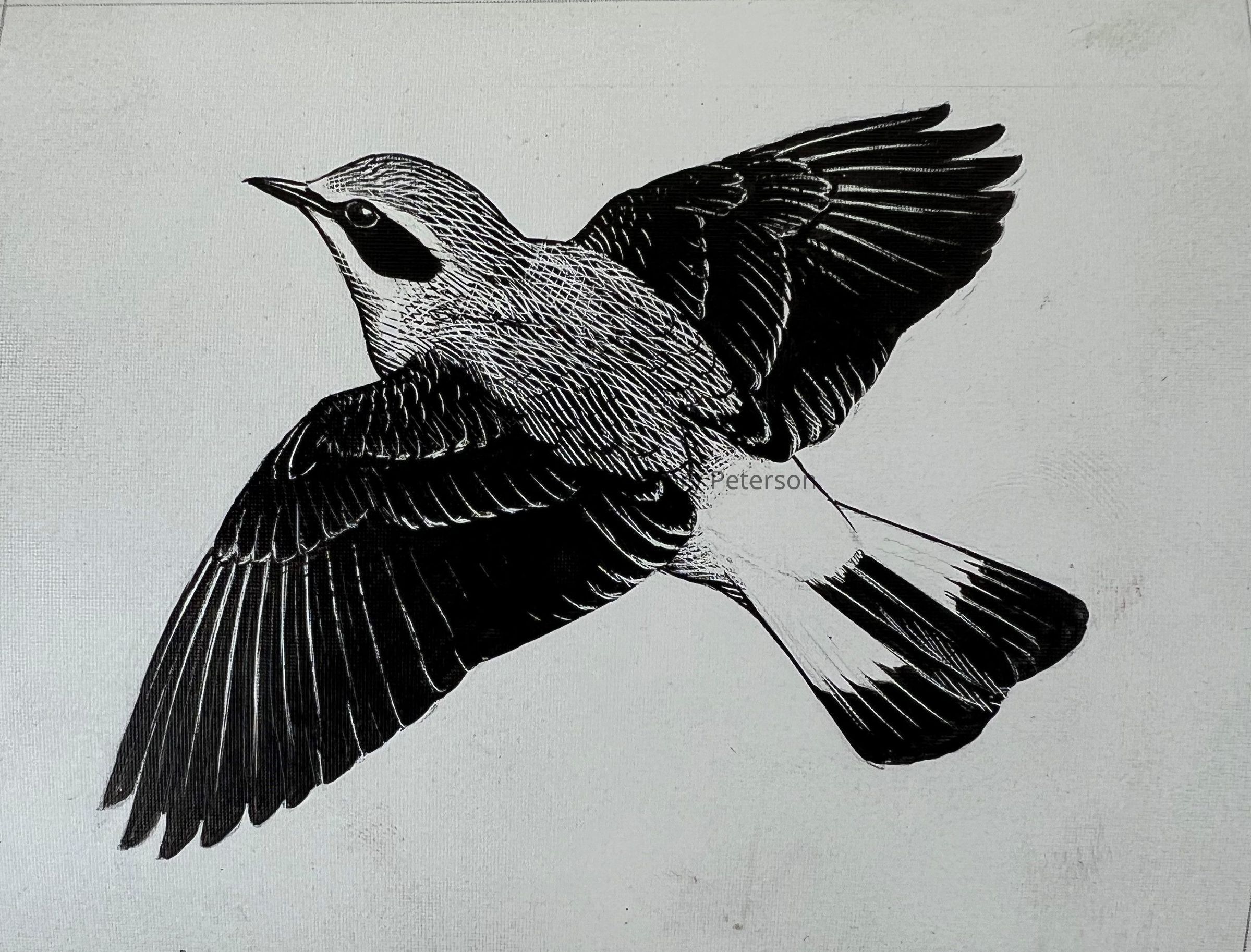 Line Drawing N. Wheatear in Flight