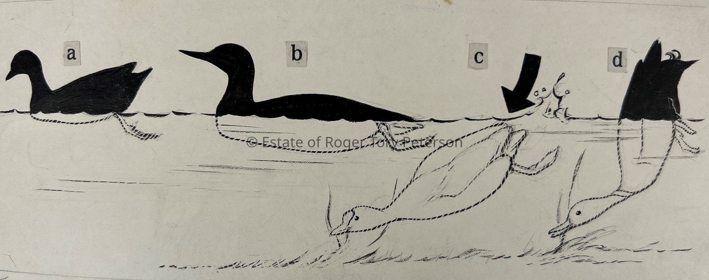 Line Drawing Ducks Swimming