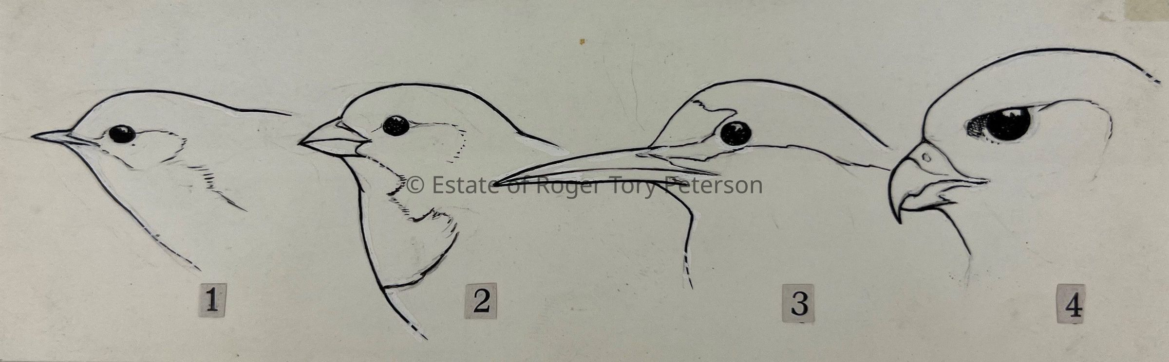 Line Drawings Bill Shapes; Warbler, Sparrow, Tern, Kestrel