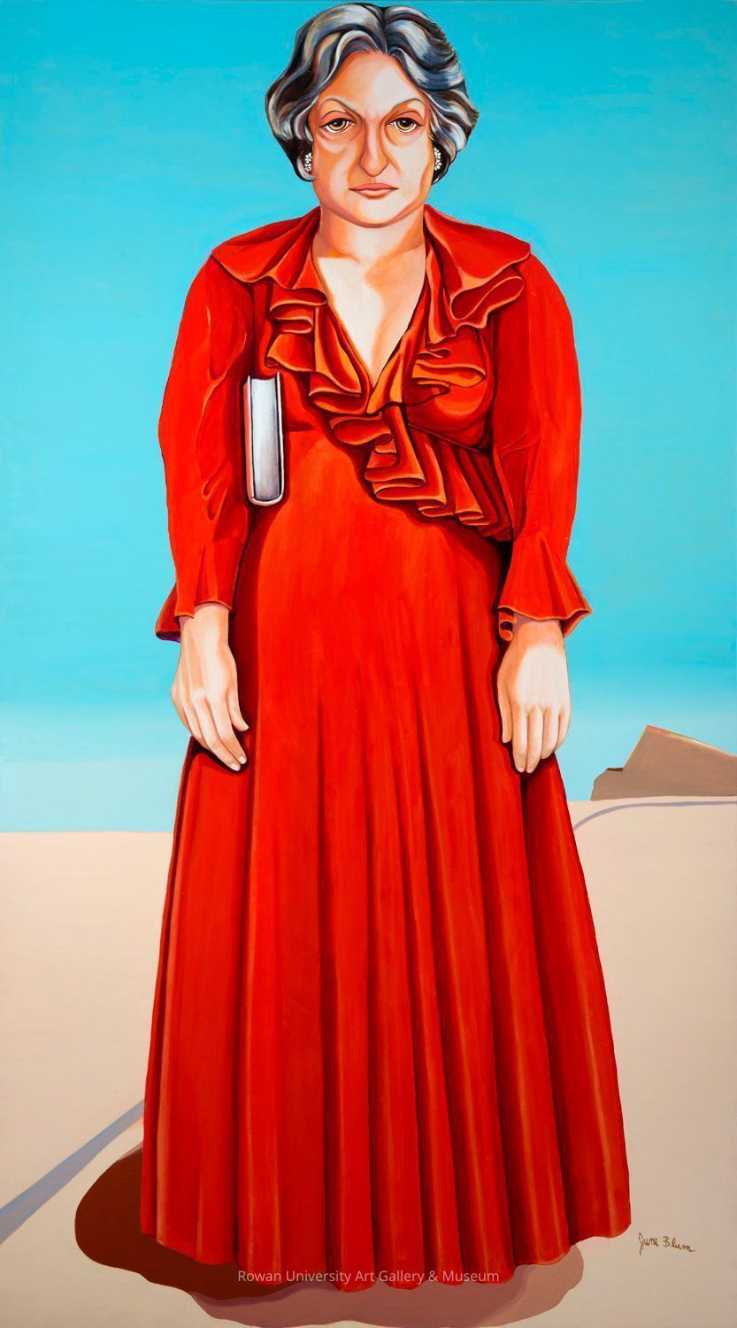 June Blum (1929–2017), Betty Friedan as the Prophet, 1976, oil on canvas, 108 1/4 x 60 in. Rowan University Art Gallery & Museum, Gift of June Blum (2012.6). Photo: Karen Mauch Photography.