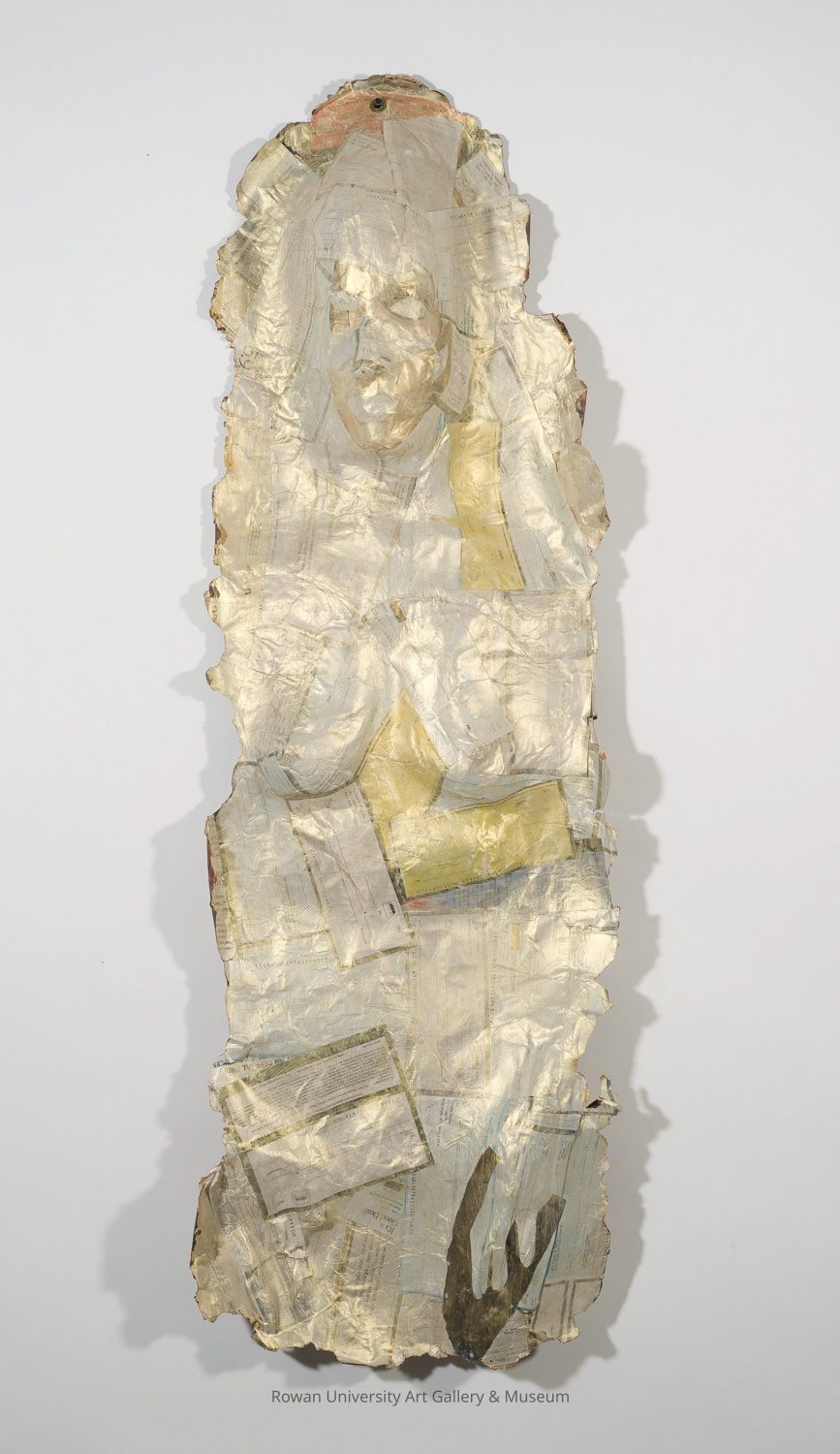 Vernita Nemec (b. 1942), Self-Portrait, 2005, cast paper checks from credit card companies, 42 x 14 x 4 in. Rowan University Art Gallery & Museum, Sylvia Sleigh Collection (2011.62). Photo: Karen Mauch Photography.