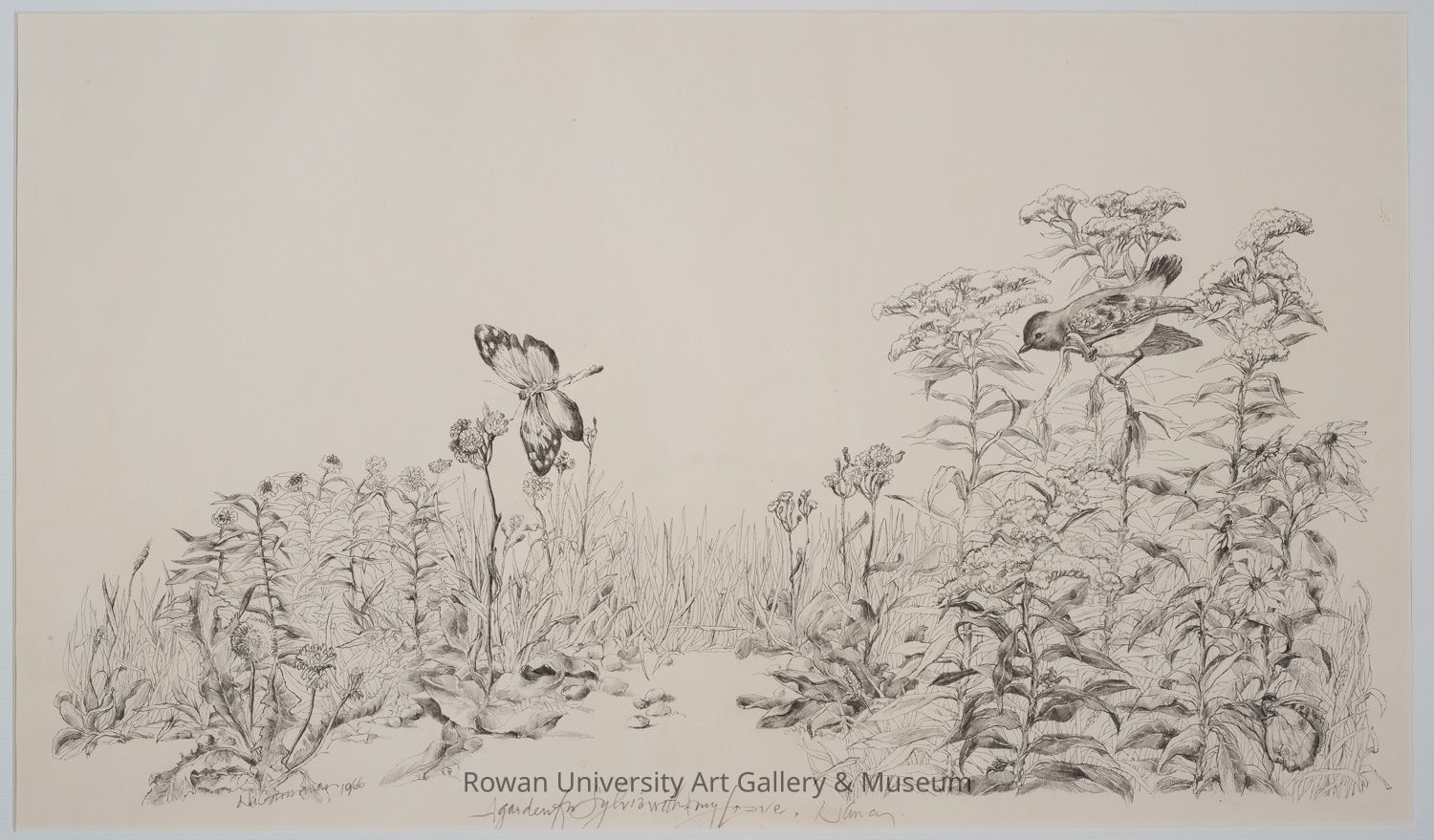 Nancy Grossman (b. 1940), A Garden for Sylvia, 1966, graphite on paper, 13 7/8 x 21 7/8 in. Rowan University Museum of Contemporary Art, Sylvia Sleigh Collection (2011.94). Photo: Karen Mauch Photography.