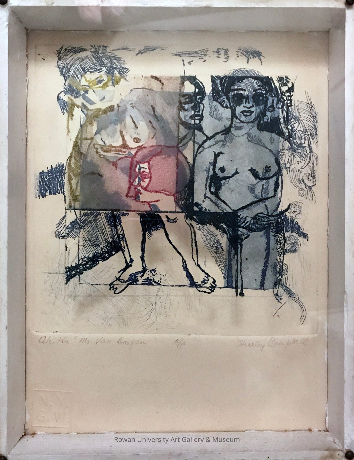 Wooden box with portions of several nude women printed in layers, some on the Plexiglas cover and others on the printed backingType of Print