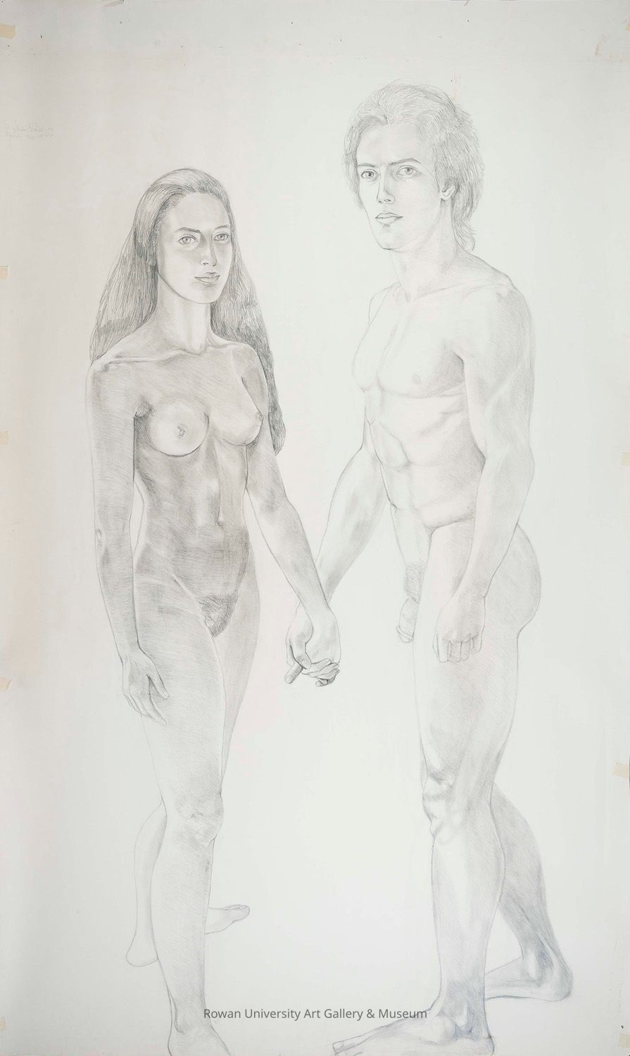 Sylvia Sleigh (1916–2010), Alice Attie and Ken Antes, 1977, graphite on paper, 78 1/8 x 47 1/2 in. Rowan University Museum of Contemporary Art, Gift of the Estate of Sylvia Sleigh (2016.19). Photo: Karen Mauch Photography.