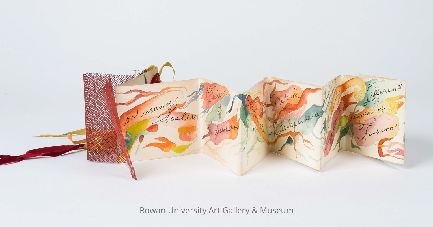 Rosemary Mayer (1943–2014), For 1978: Study for a book at Christmas for Sylvia & Lawrence, 1977, graphite and watercolor on paper, tulle, ribbons, and felt, 4 1/8 x 35 1/2 in. (unfolded). Rowan University Museum of Contemporary Art, Sylvia Sleigh Collection (2011.103). Photo: Karen Mauch Photography.