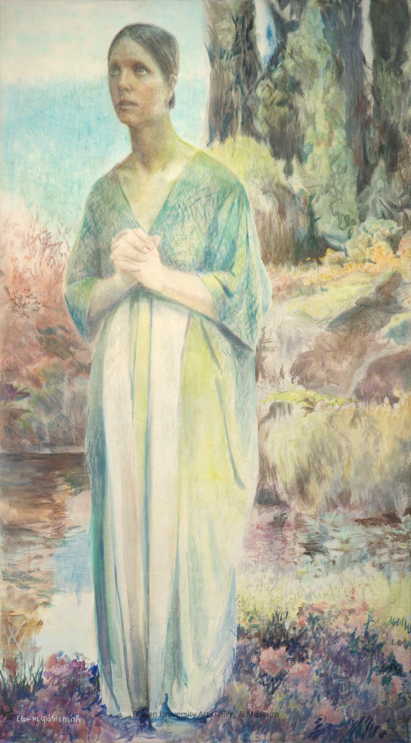 Elsa M. Goldsmith (1920–2006), Joan of Arc, 1976, oil on canvas, 108 x 60 in. Rowan University Museum of Contemporary Art, Gift of Cris and Jo Ann Goldsmith (2009.1). Photo: Karen Mauch Photography.