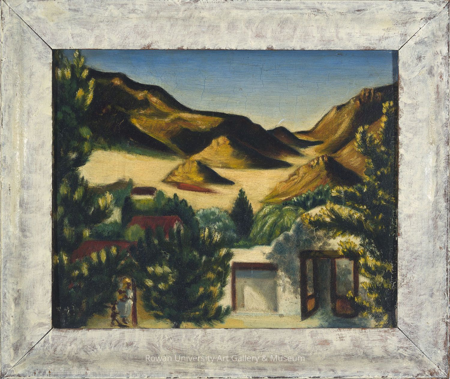 Katherine Amy Miller (1892–1971), Landscape, c. 1932, oil on wood, 8 1/8 x 10 5/8 in. Rowan University Museum of Contemporary Art, Sylvia Sleigh Collection (2011.26). Photo: Karen Mauch Photography.