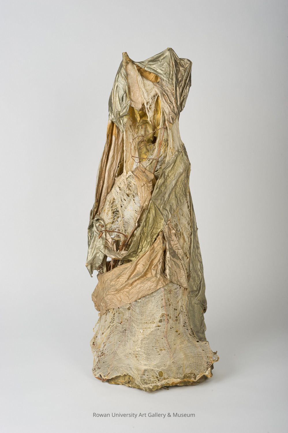 Rosemary Mayer (1943–2014), Niche Sculpture, 1992, wire mesh, plaster, fabric, rabbit skin glue, metallic powder, and twigs, 30 1/4 x 12 x 9 1/4 in. Rowan University Museum of Contemporary Art, Sylvia Sleigh Collection (2011.61). Photo: Karen Mauch Photography.