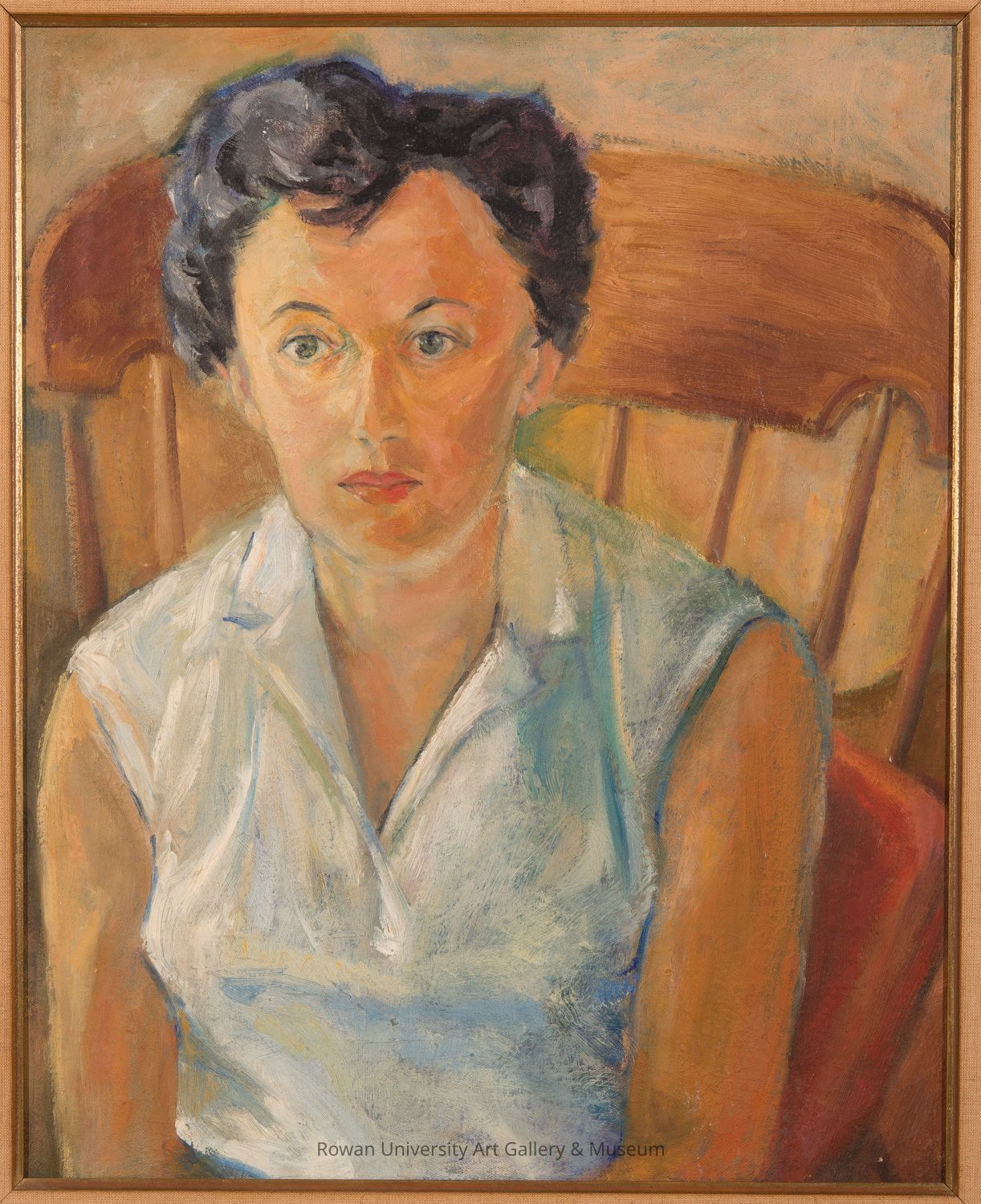 Irene Krugman (1925–1982), Portrait of Shirley Shalit, c. 1950, oil on canvas, 21 x 17 in. Rowan University Museum of Contemporary Art, Gift of Shirley Shalit (2015.3). Photo: Karen Mauch Photography.