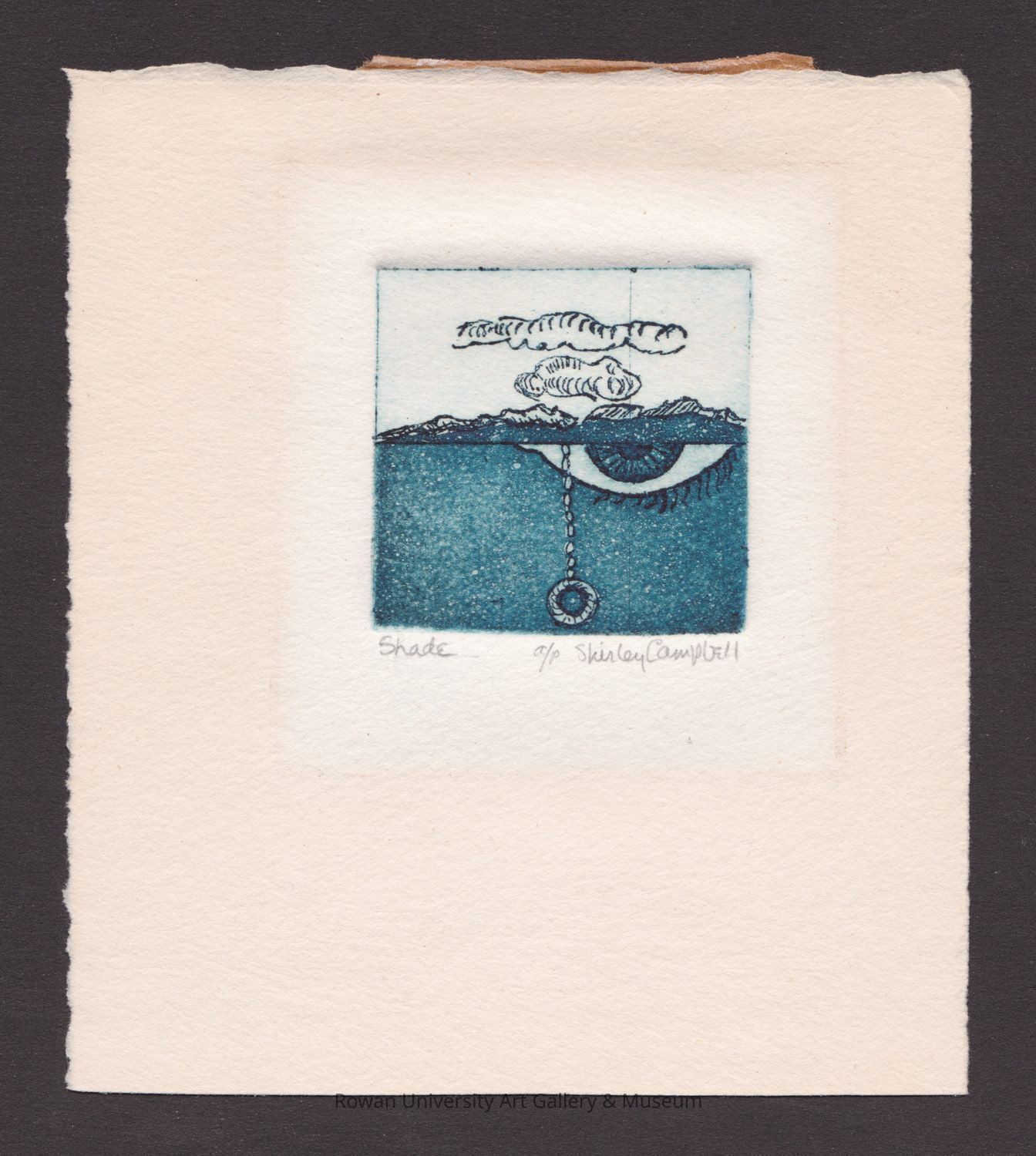 Shirley D. Campbell (1919–2009), Shade, undated, etching and aquatint on paper, 5 7/16 x 4 13/16 in. (sheet), 1 15/16 x 1 15/16 in. (impression). Rowan University Museum of Contemporary Art, Gift of Shirley Shalit (2018.8). Photo: Andrew D. Hottle.