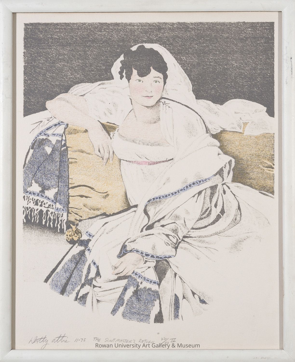 Dotty Attie (b. 1938), The Scoutmaster's Return IV, 1975, screenprint on paper, edition 22/30, 12 x 10 in. Rowan University Museum of Contemporary Art, Sylvia Sleigh Collection (2011.2.4). Photo: Karen Mauch Photography.