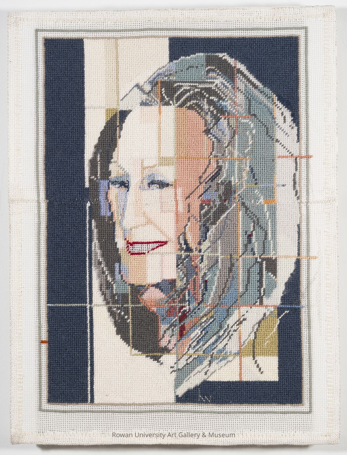 Harriet Winter (1927–2010), Untitled (Sylvia Sleigh), c. 1997–2010, needlepoint on fabric canvas, mounted on Plexiglas and wood, 19 3/8 x 14 3/4 x 1 1/4 in. Rowan University Museum of Contemporary Art, Sylvia Sleigh Collection (2011.101). Photo: Karen Mauch Photography.