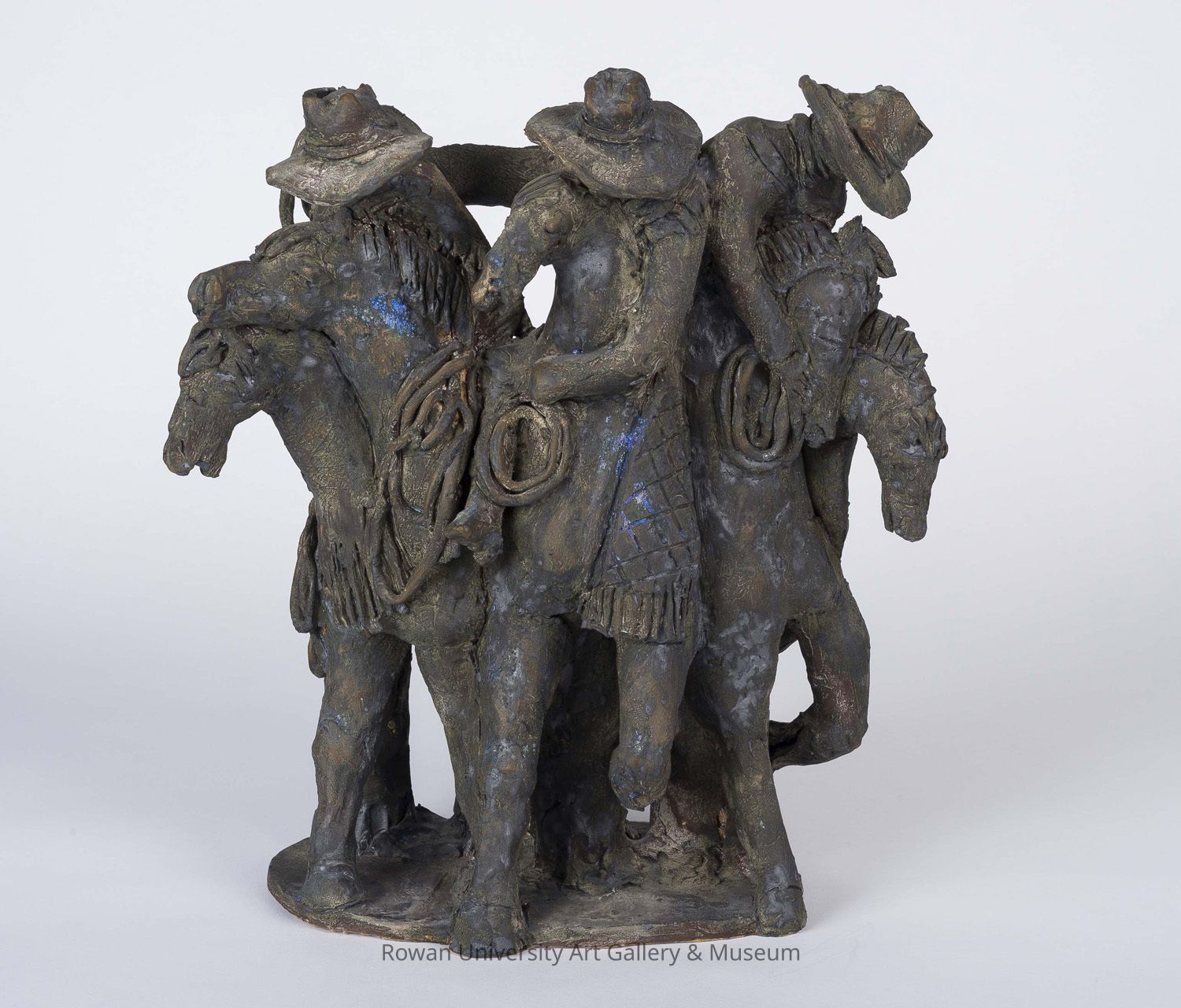 Evelyn O. Wilson (1915–2006), Untitled (Wild West), c. 1980, low-fired clay, glazed, cone 06, 15 1/2 x 13 3/4 x 7 1/4 in. Rowan University Museum of Contemporary Art, Gift of Joanne Jaffe. Photo: Karen Mauch Photography.
