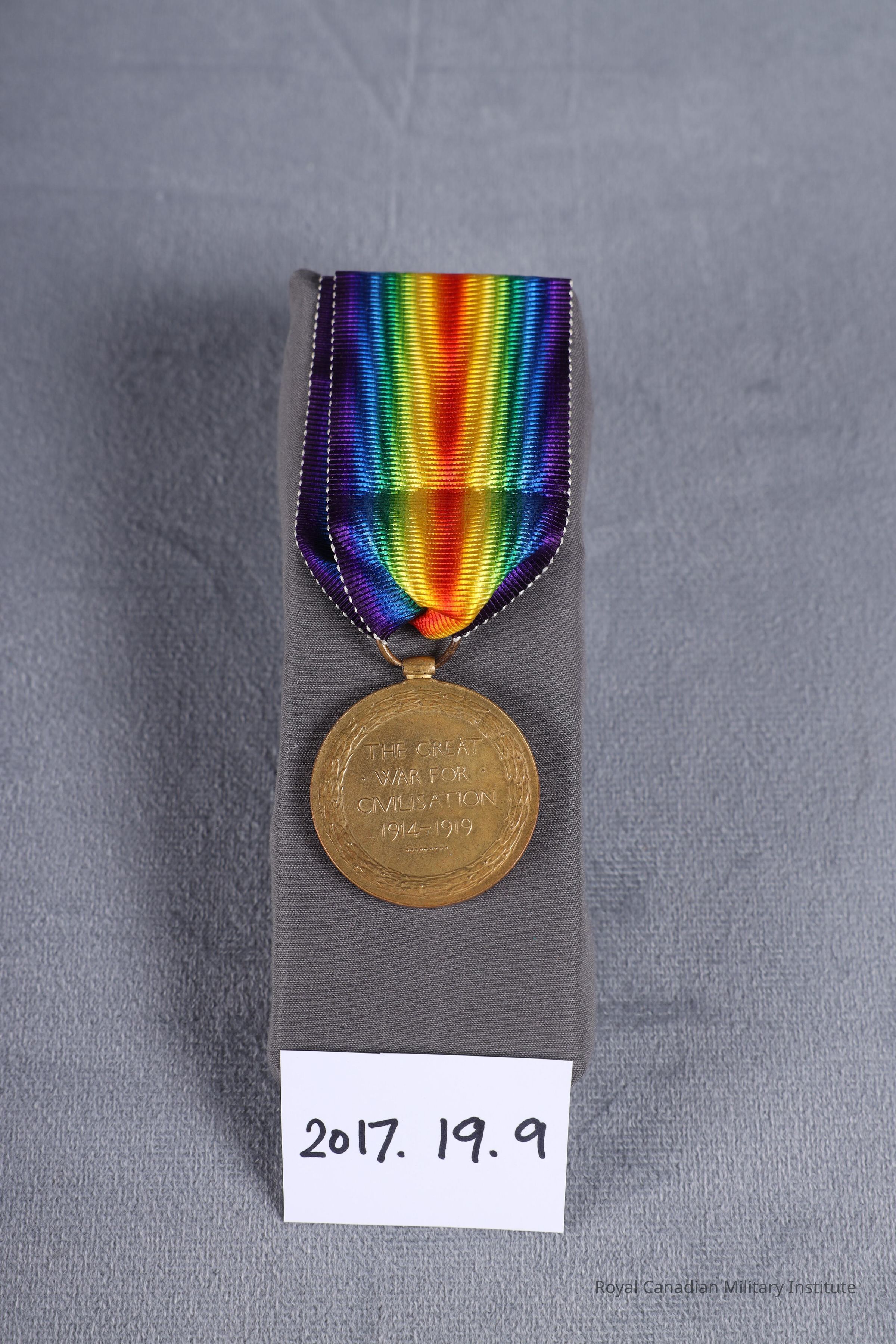 The Allied Victory Medal was given to all ranks of the British Empire, including soldiers, civilians, and medical staff who served in any theatre of war between 5 August 1914 and 11 November 1918. It was given to members of the British Navy who served in Russia between 1919-1920. The Allied Victory Medal was also provided to British sailors who cleared the North Sea of mines between 11 November 1918 and 30 November 1919. 351, 289 Victory medals were given to members of the Canadian Expeditionary Force.