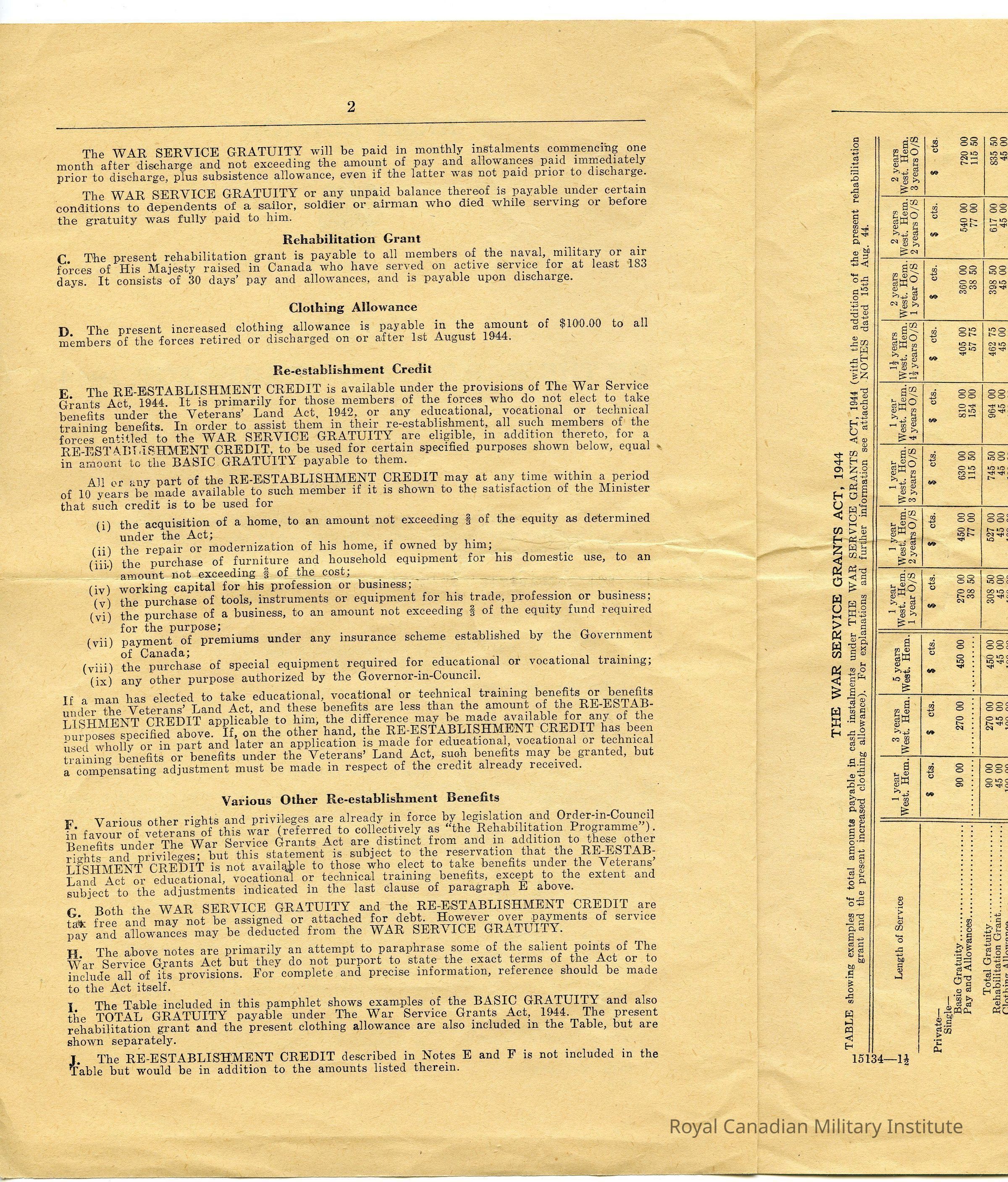 1944 Canadian Army War Service Grants pamphlet.Entry/Object ID