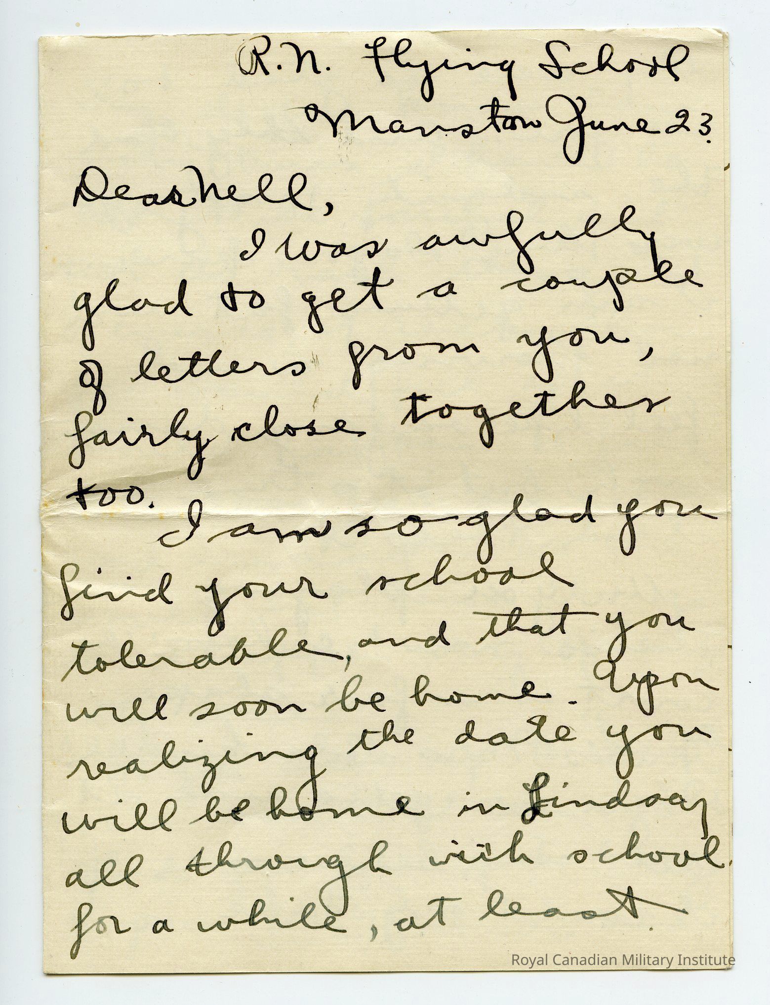 Letter R.N. Flying School Marston June 23, 1917