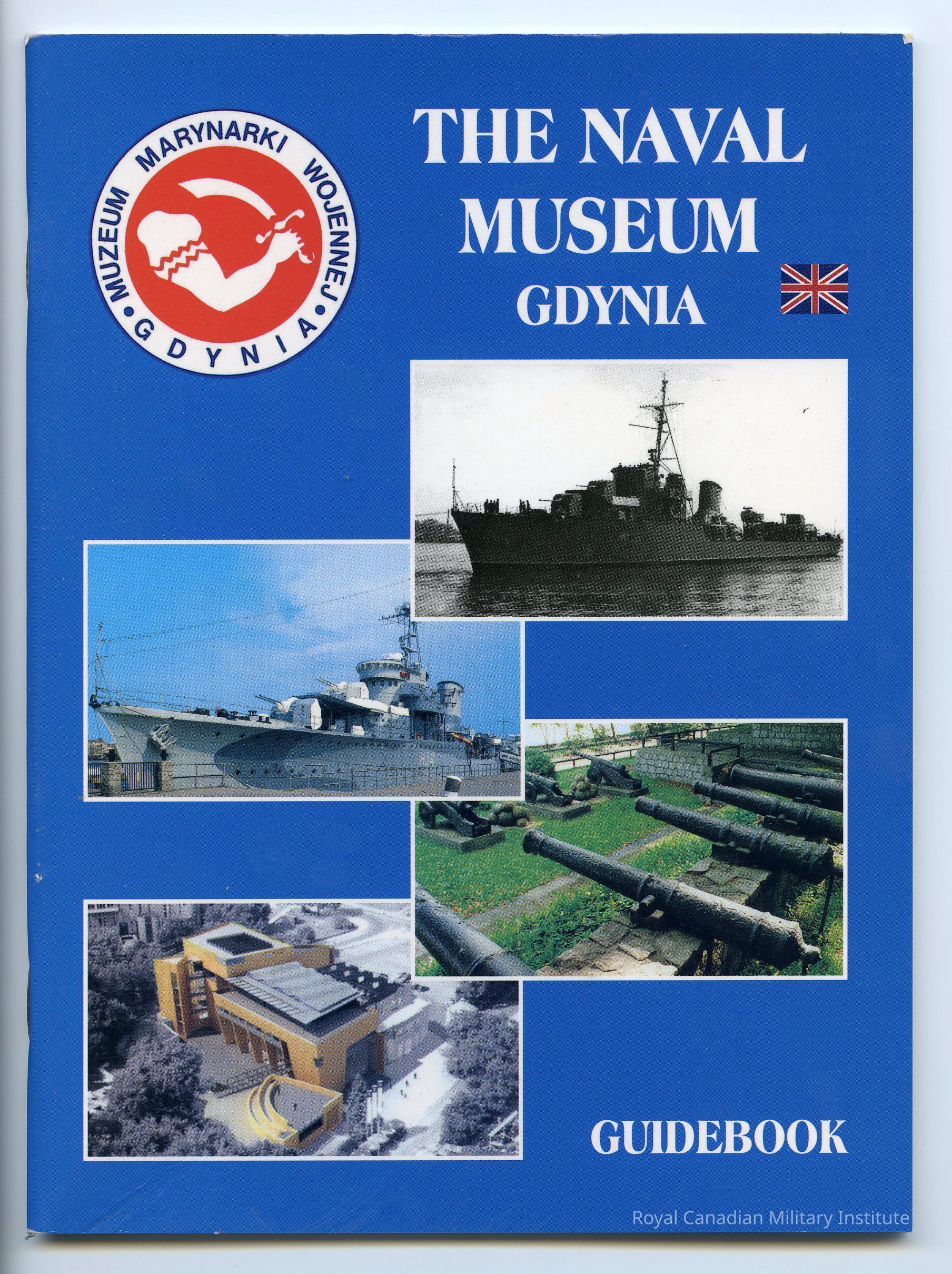 2004 Polish Navy Museum Guidebook. Located in Gdynia, Poland. The cover is blue with two images of two different naval ships, an image of a row of cannons, am image of the museum's building from a bird's eye view, and the museum's seal.Dimensions