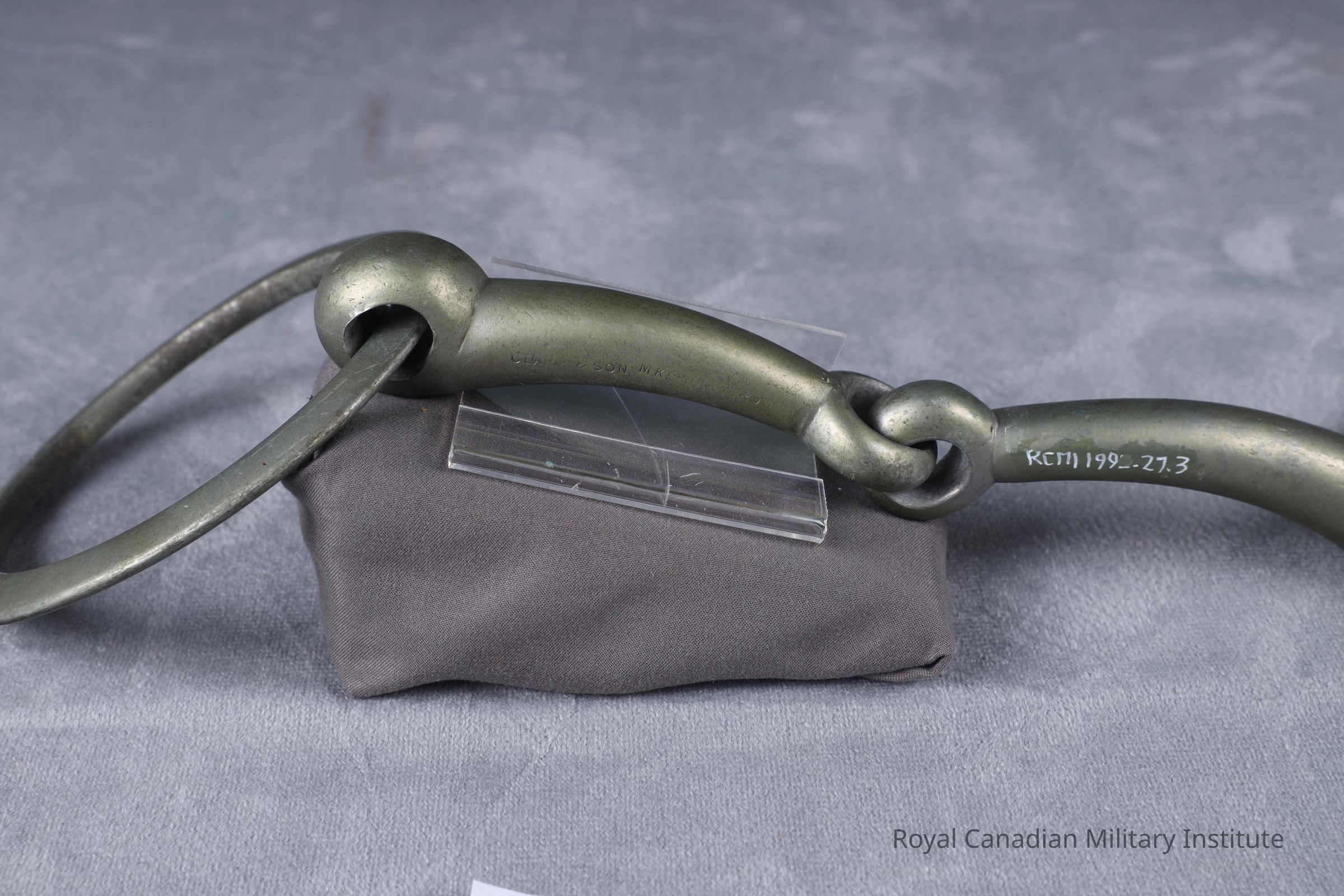 1914-1918 British Army Royal Artillery bit brace (snaffle bit). Dulled white metal: four chain links: two outside rings joined by slightly curved arms.Made/Created