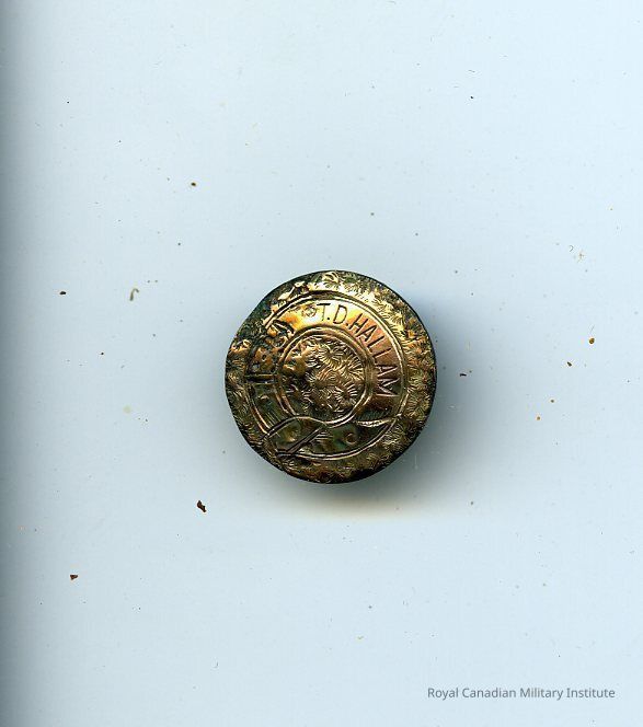 1916-1918 Royal Naval Air Service service dress shirt cuff stud. Brass or brass-plated white metal. Circular, 1.6 cm. diameter. Domed front with circular garter inside, inscribed: "T.D. Hallam"Made/Created
